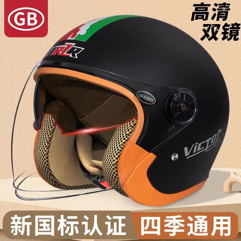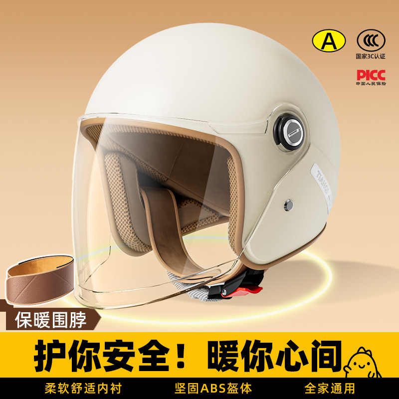 新国標認証ヘルメット電気自動車女性秋冬保温半ヘルメット四季通用オートバイヘルメット男性