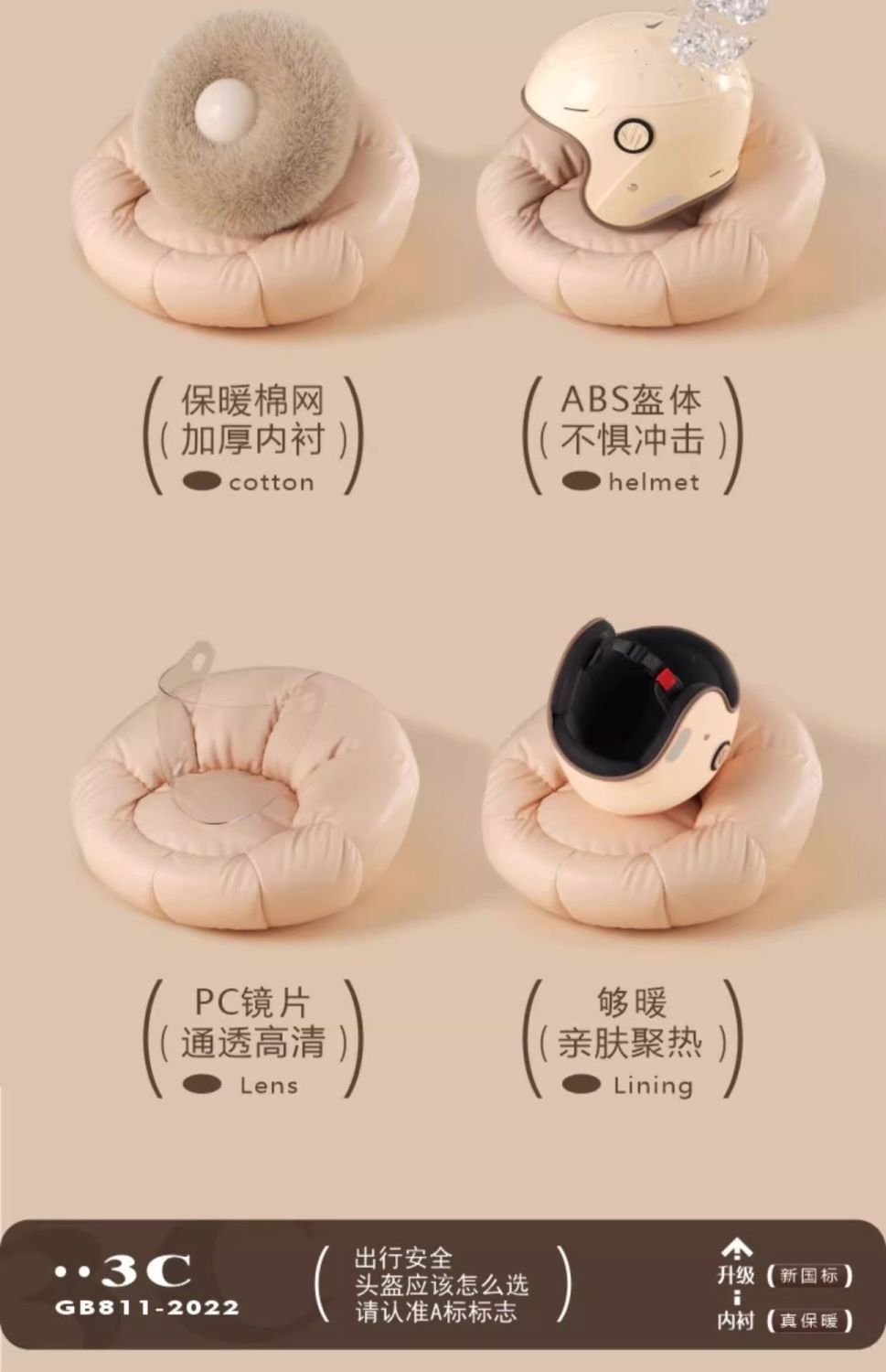 新国标3C认证电动车秋冬款头盔男女通用防寒保暖摩托车轻便帽