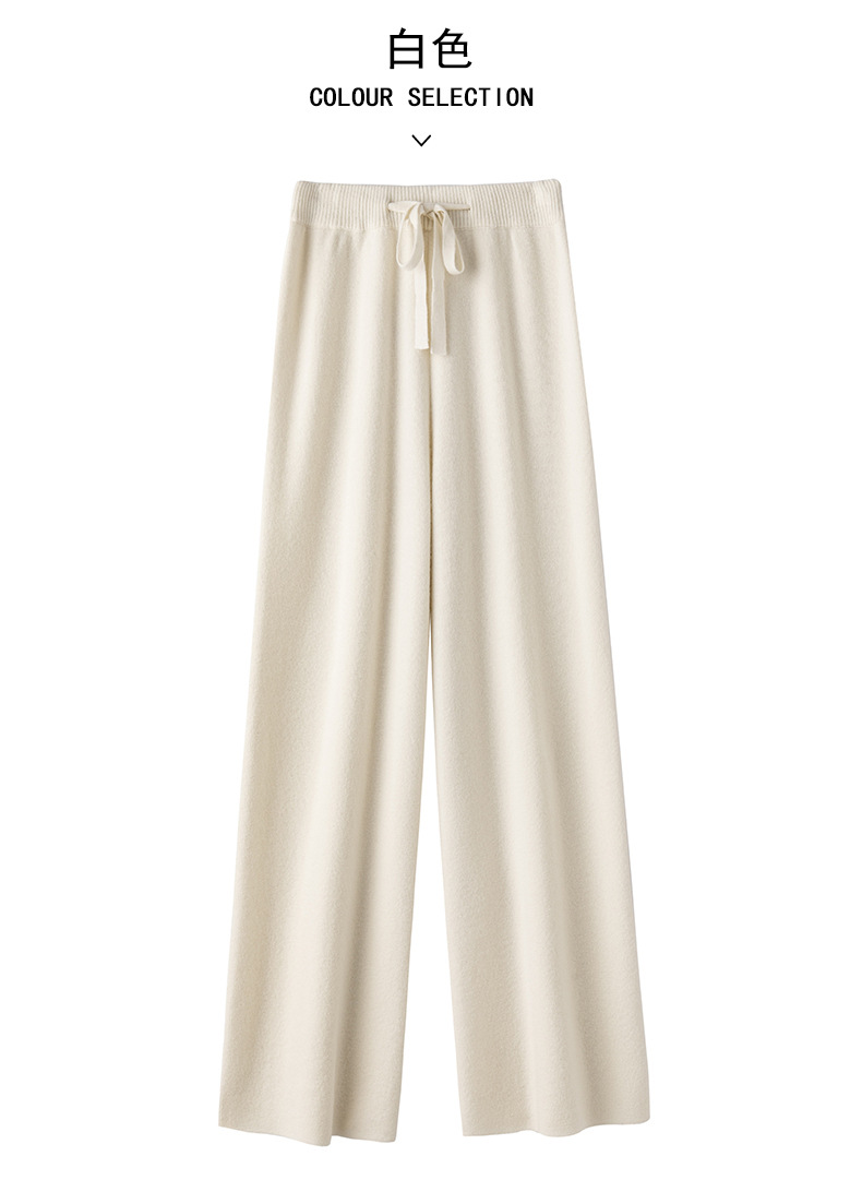 100純ウールのワイドパンツの女性秋冬の高腰ニットのストレートパンツは、白い垂直感のズボンを引きずって長くします。