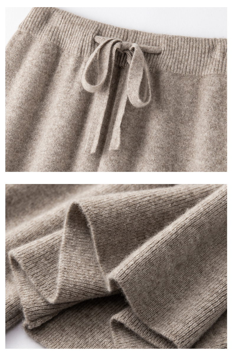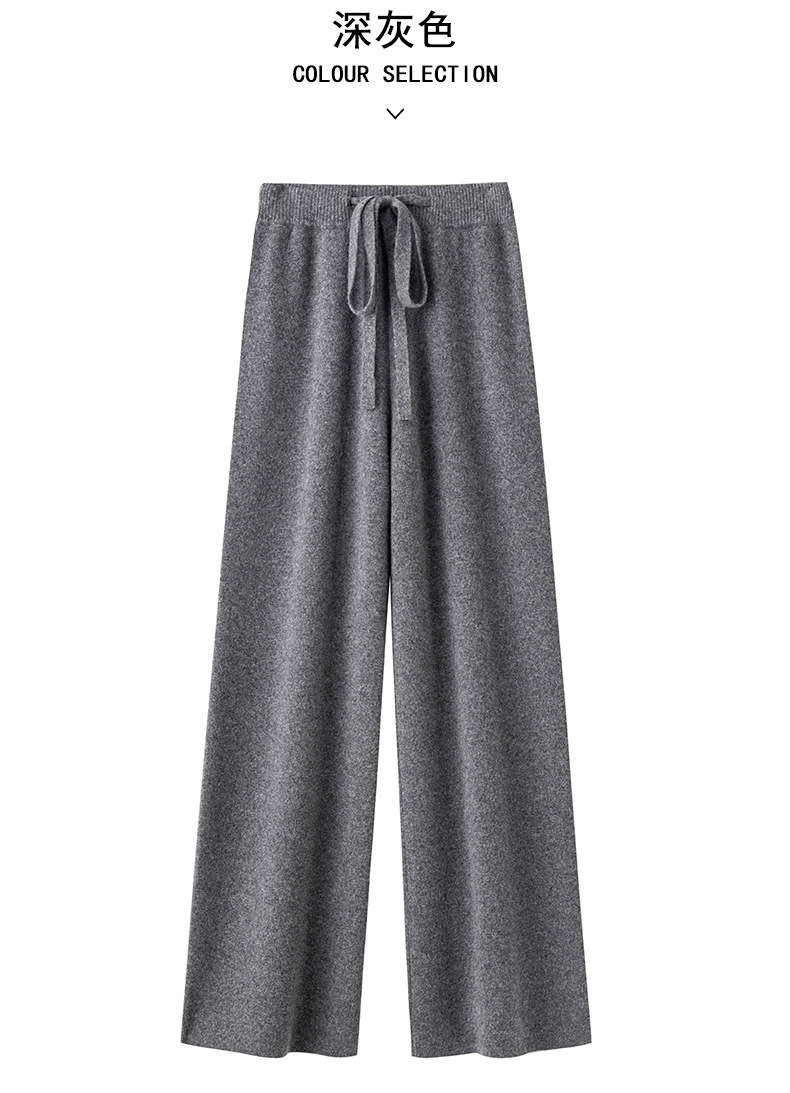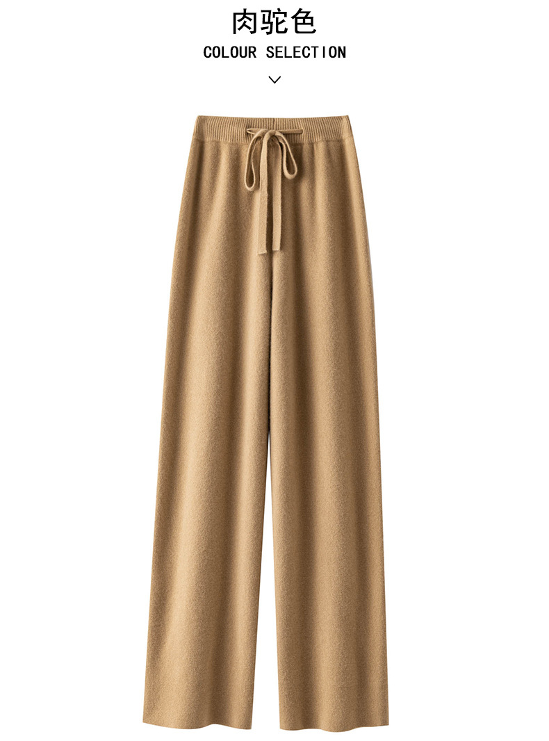 2025年秋冬新款纯羊毛加厚针织休闲裤女纯色高腰保暖长款直筒裤女