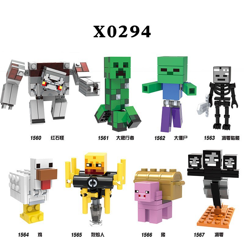 レゴの小さな粒子、私のデワールドビルディングブロック、ミニフィギュア、スケルトン、豚、鶏、レッドストーンモンスター、ビッグゾンビクリーナーおもちゃと互換性があります。