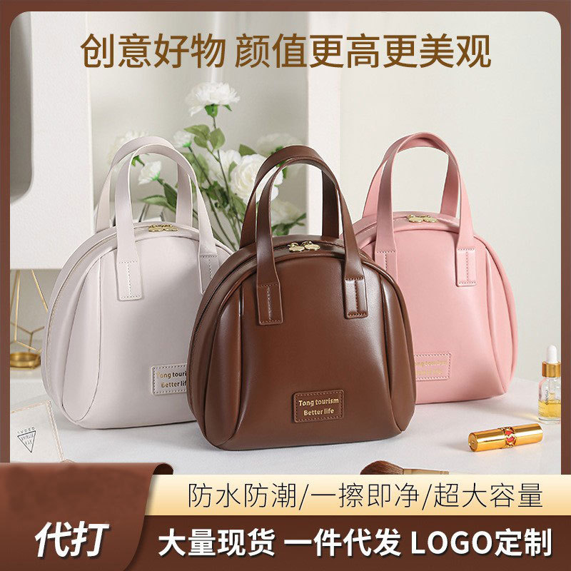 Ing风新品レザーシェル化粧ポーチ防水スキンケア収纳袋大容量洗面バッグハンドバッグ