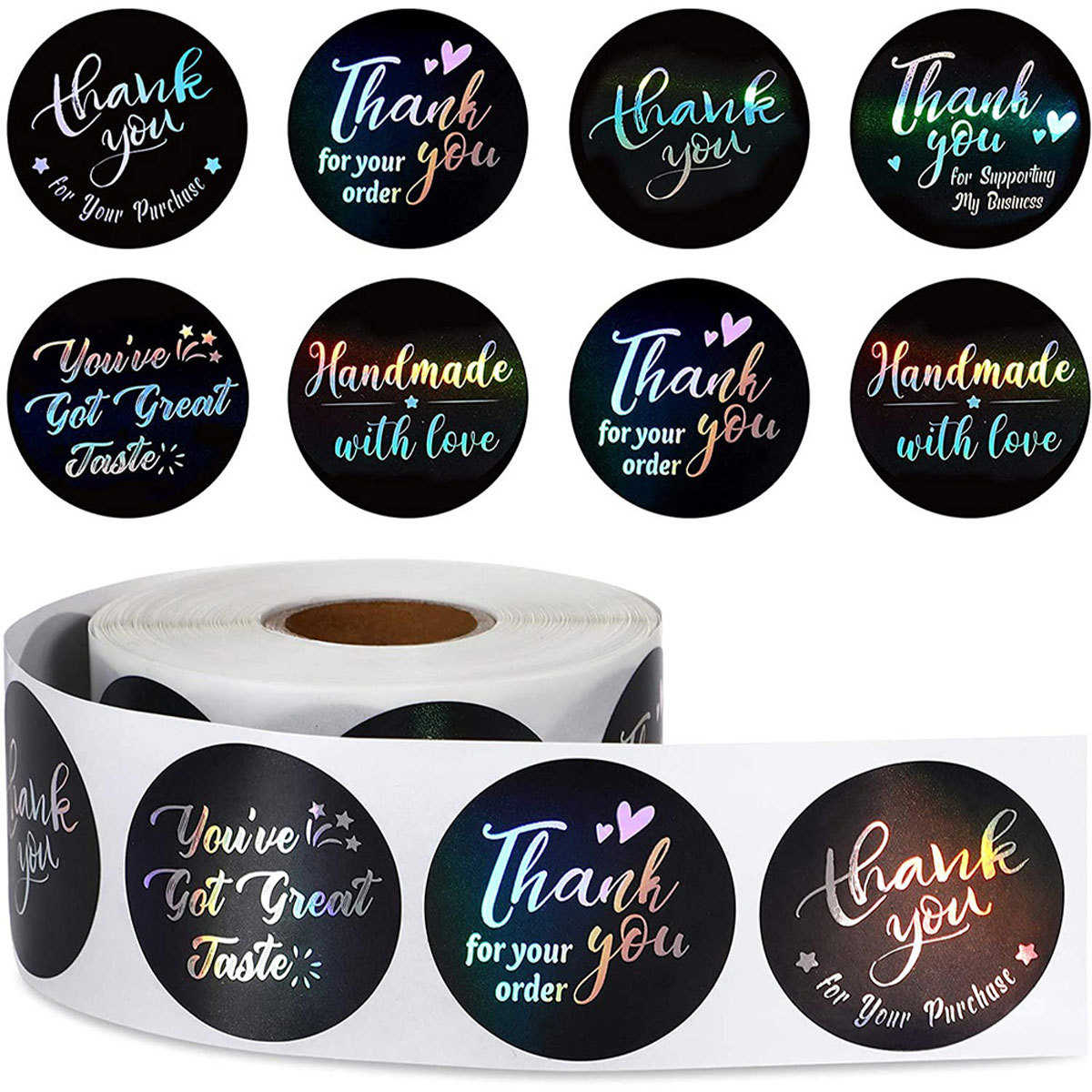 500/卷2.5厘米卷装彩虹镭射感谢购买商业装饰不干胶贴纸标签