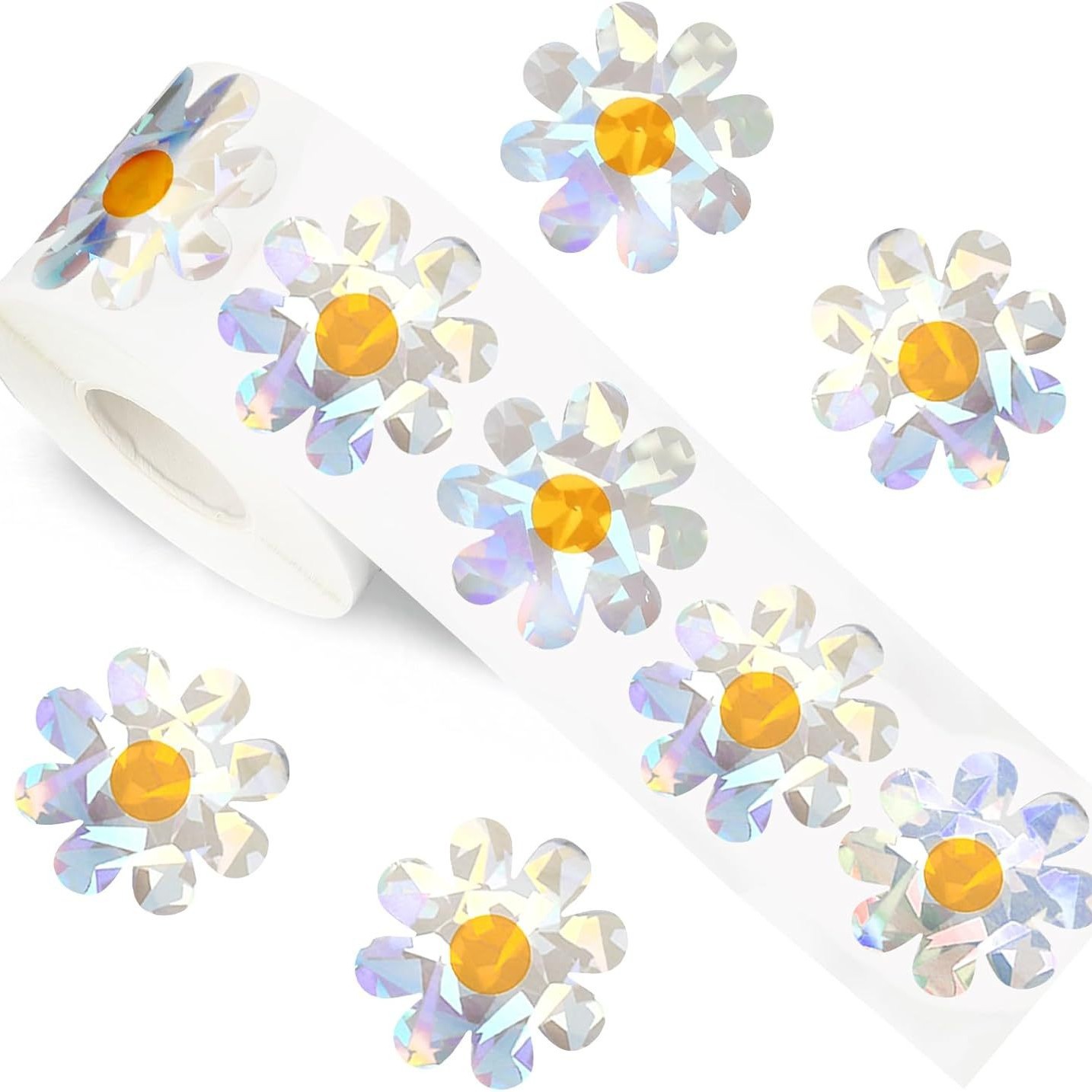 跨境500贴镭射雏菊标签雏菊贴纸1.5英寸白色花礼物包装DIY封口贴