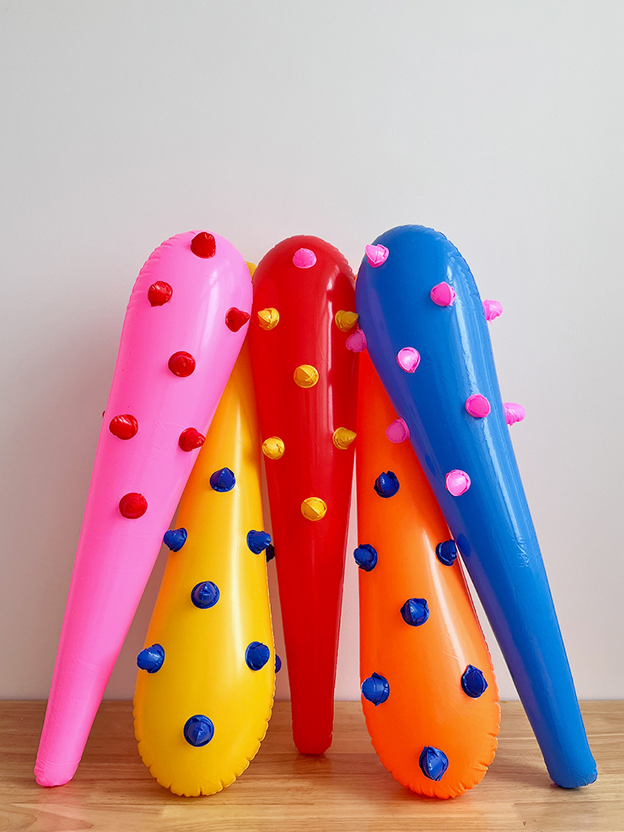 赤いメイス1本,オレンジ色のメイス 1本,黄色のメイス 1 本,ピンクのメイス 1本,青いメイス 1 本