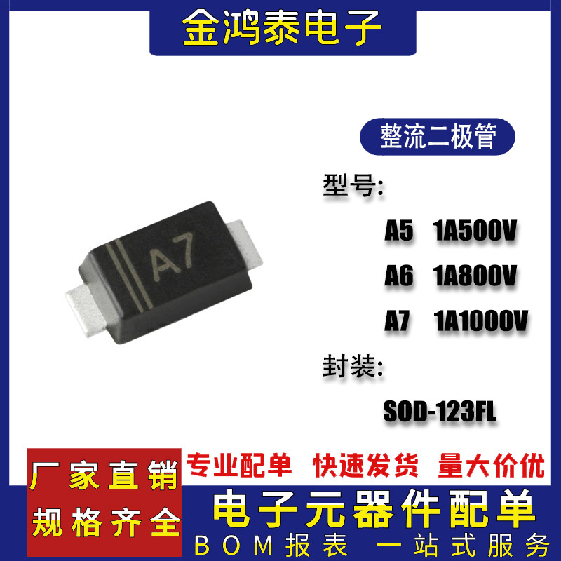 チップ整流ダイオード1n 4007/1n 4006/1n 4005シルク印刷a 7/a 6/a 5パッケージSOD-123FL