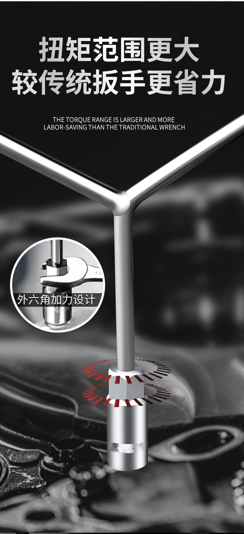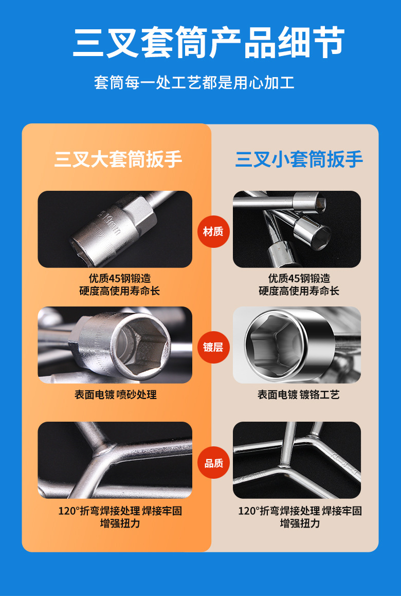 長柄y型三叉ソケットレンチ3規格クロムメッキ外六角ソケットレンチ金物手動工具卸売り