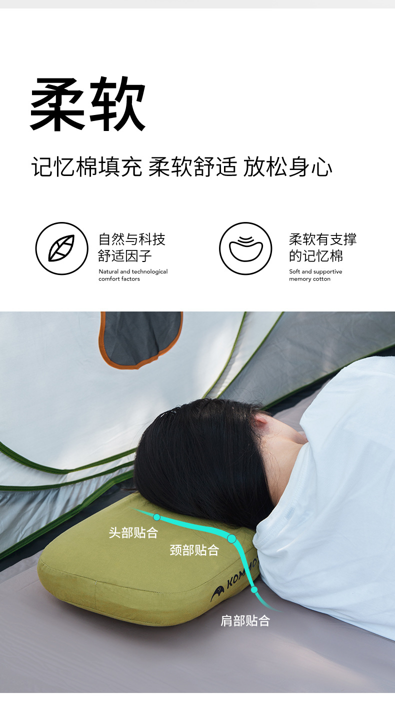屋外キャンプ枕記憶綿スロースプリングバック首保護睡眠枕キャンプテント携帯枕昼寝旅行枕