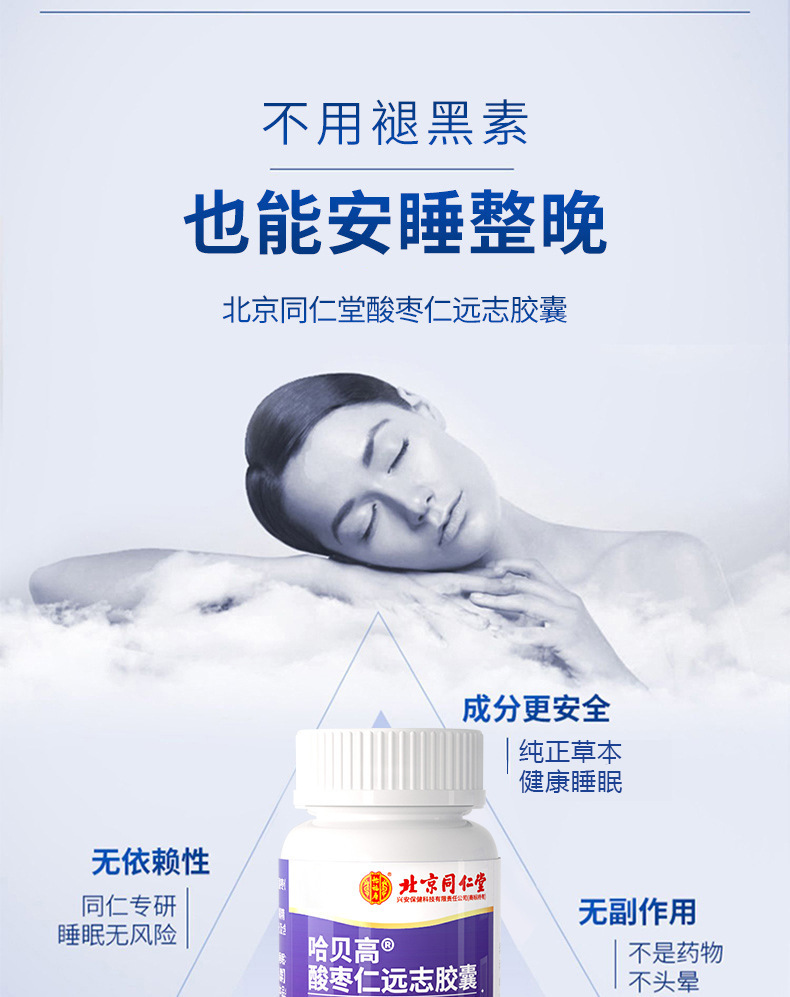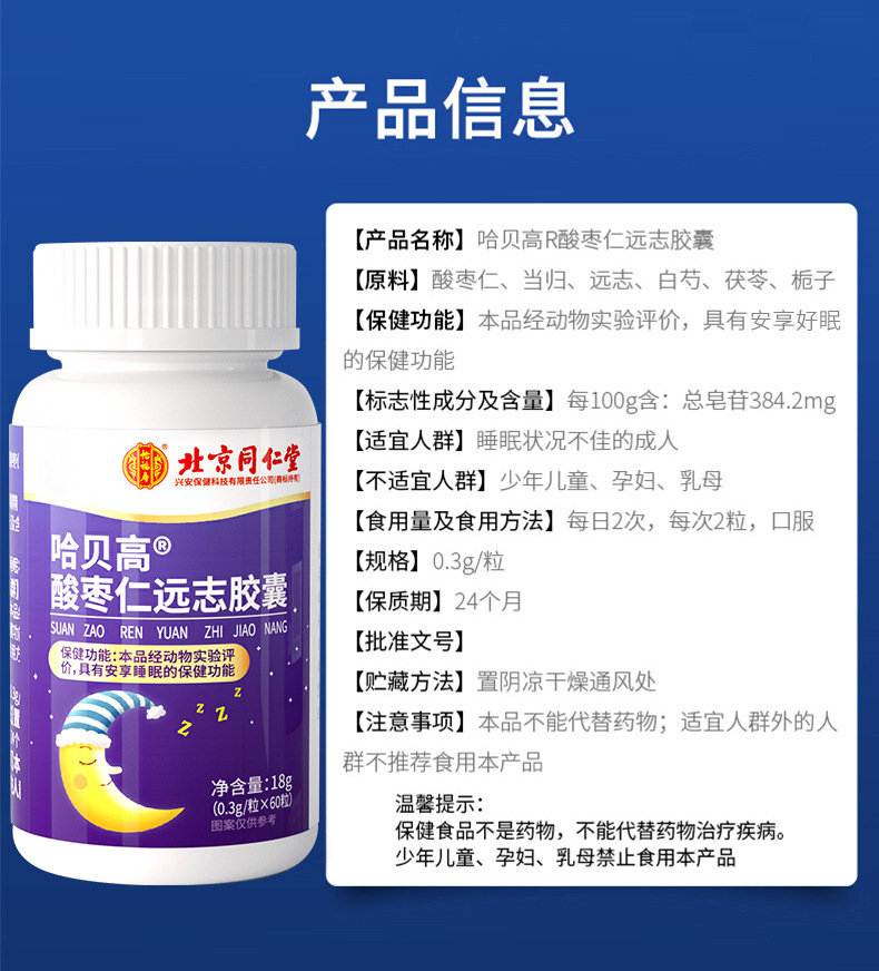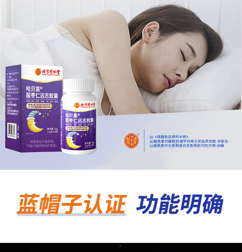 北京同仁堂怡福寿哈貝高酸棗仁遠志カプセル18g不眠多夢藍帽無痕代発