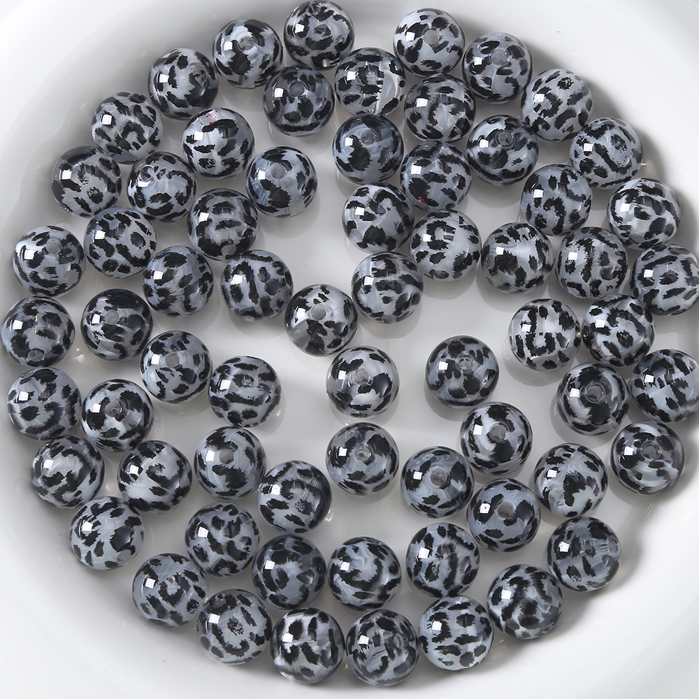 アクリル豹紋円珠雲霧通孔珠携帯電話チェーンキーホルダーDIYネックレスアクセサリー卸売り