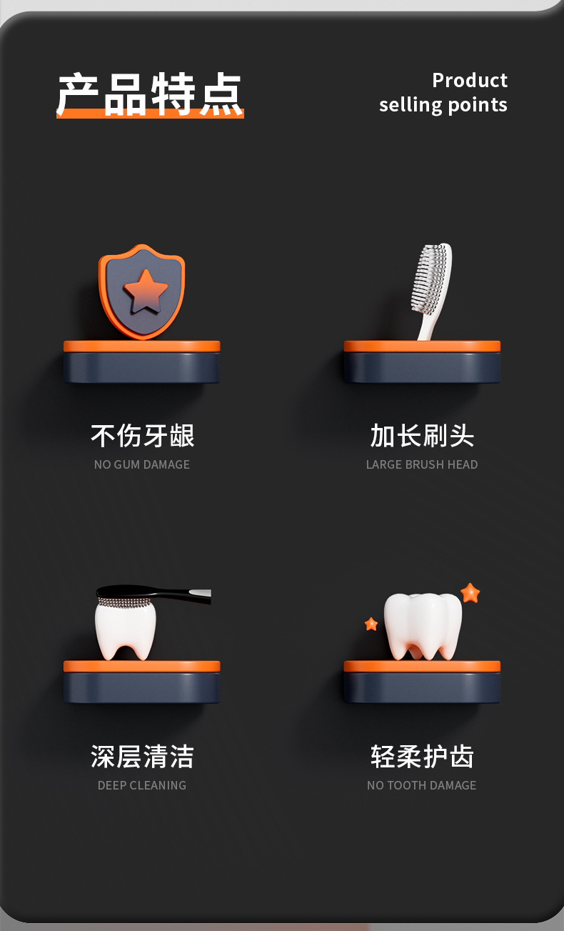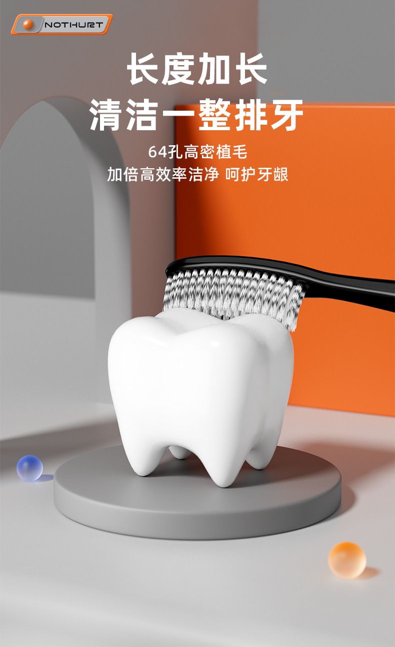 高级感长头牙刷软毛加长加宽大刷头高颜值懒人牙刷家用厂家批发