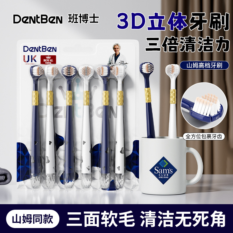 【六本入り】C端爆金高級軟毛三面歯ブラシ成人家庭用歯茎三頭歯ブラシ卸売り