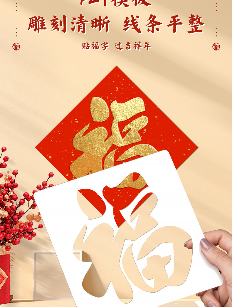 拓印福字テンプレート対聯透かし2025新年画工材料包幼稚園手作り福字テンプレート