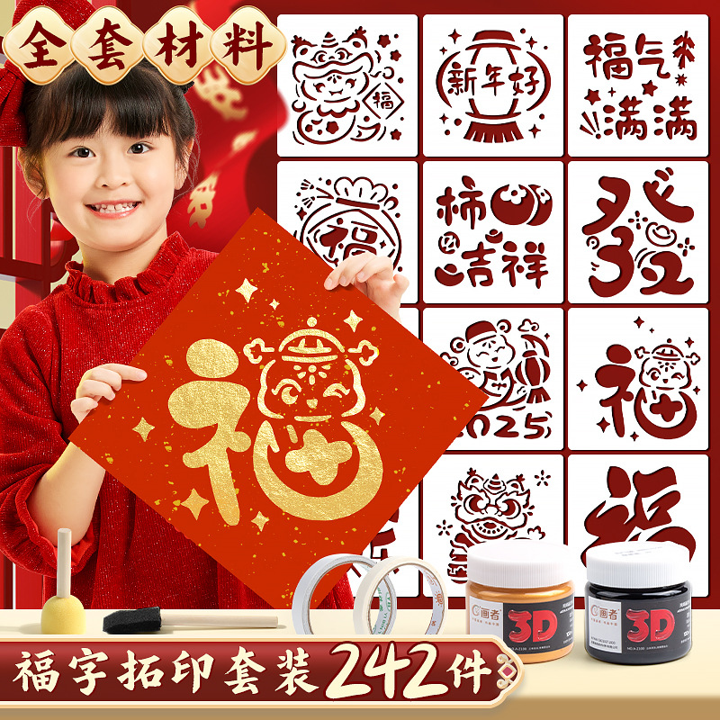 福字拓印年画模板儿童幼儿园新年手工diy马年工具材料包门贴元旦