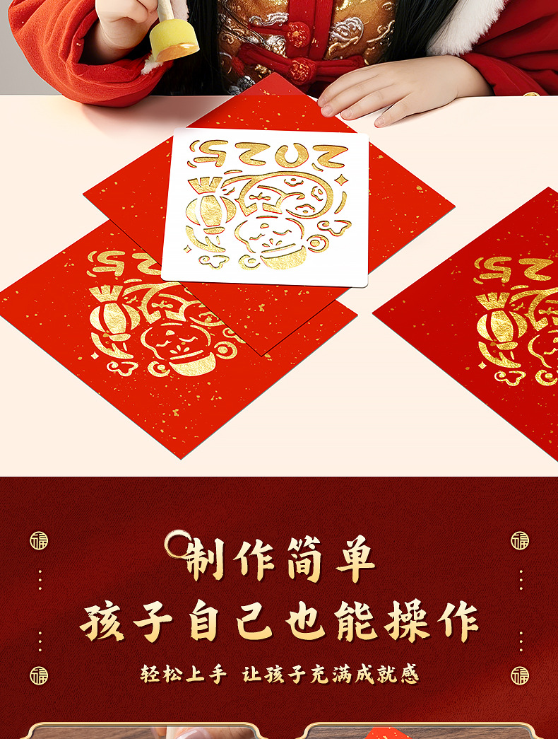 透かし彫り福字テンプレート拓印ツールセット早教玩具親子交流2025蛇年diy児童手作り