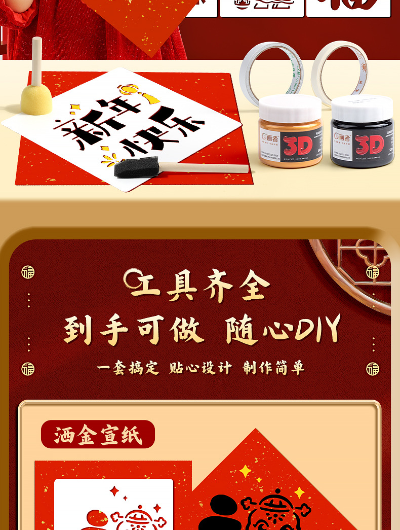 新年福字拓印年画テンプレートツール材料包セット幼稚園児童diy手作り蛇年旧正月
