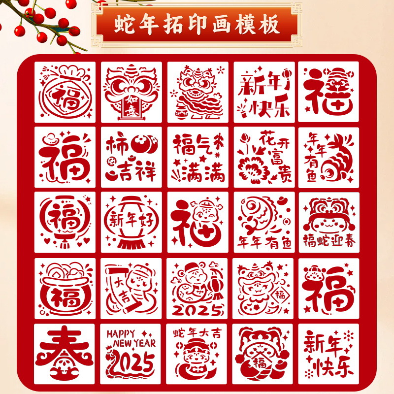 2025年新年福字拓印画幼稚園児童新年彫刻版落書き画diy手作り蛇年テンプレート