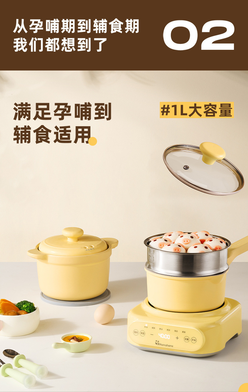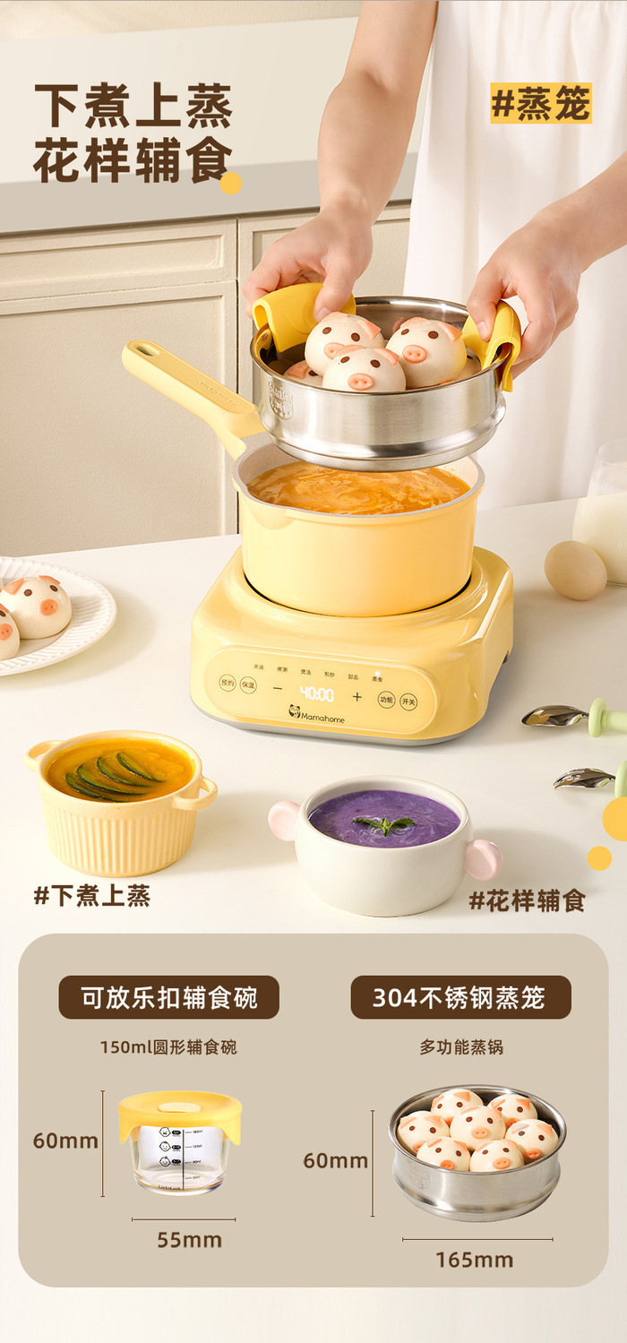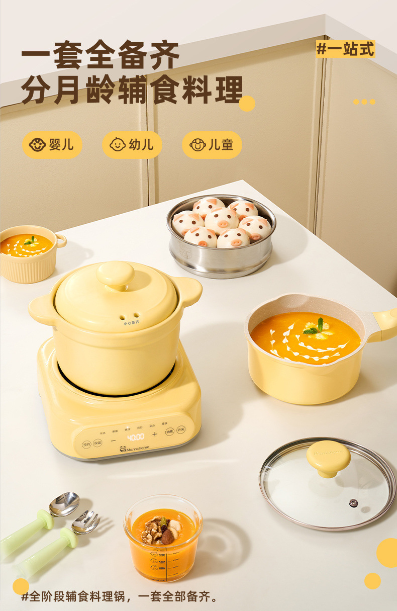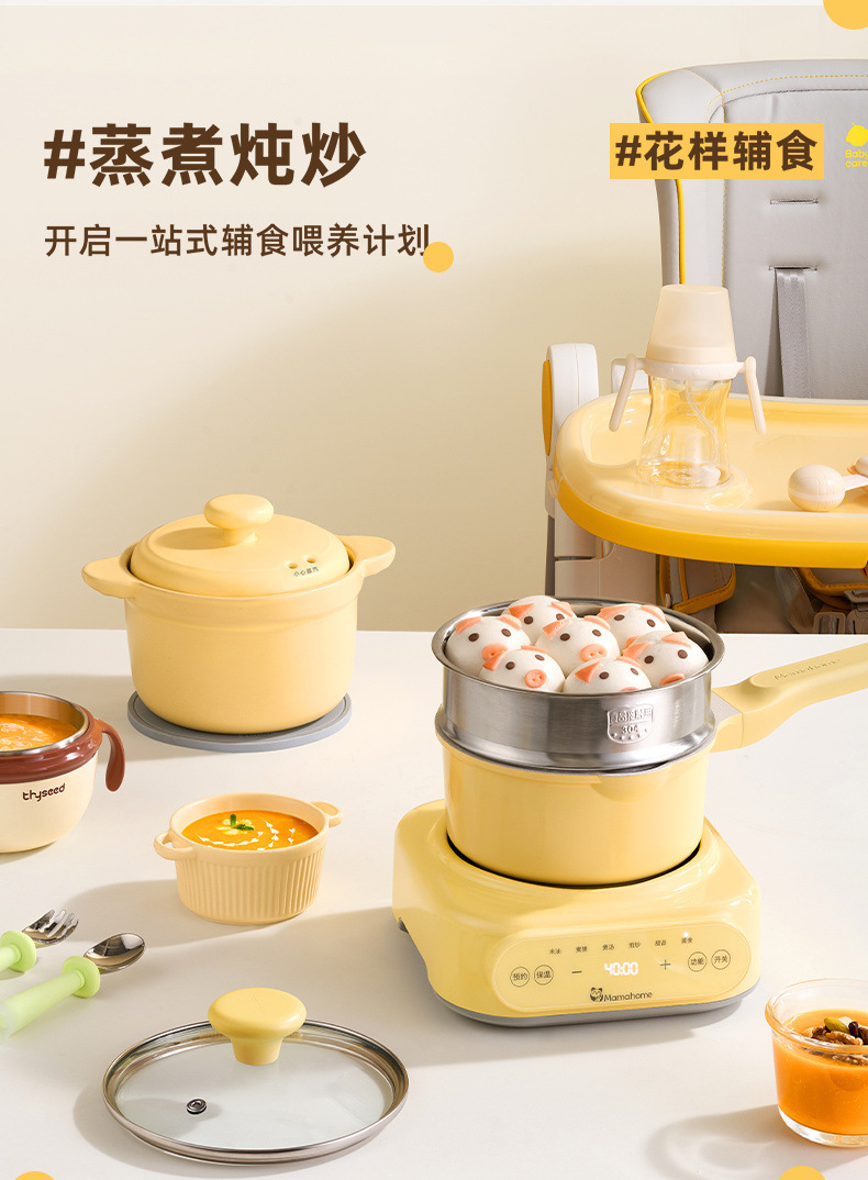 Mamahome補助食ベビー電気シチュー鍋ミニ小煮粥全自動赤ちゃん煎り蒸煮一体