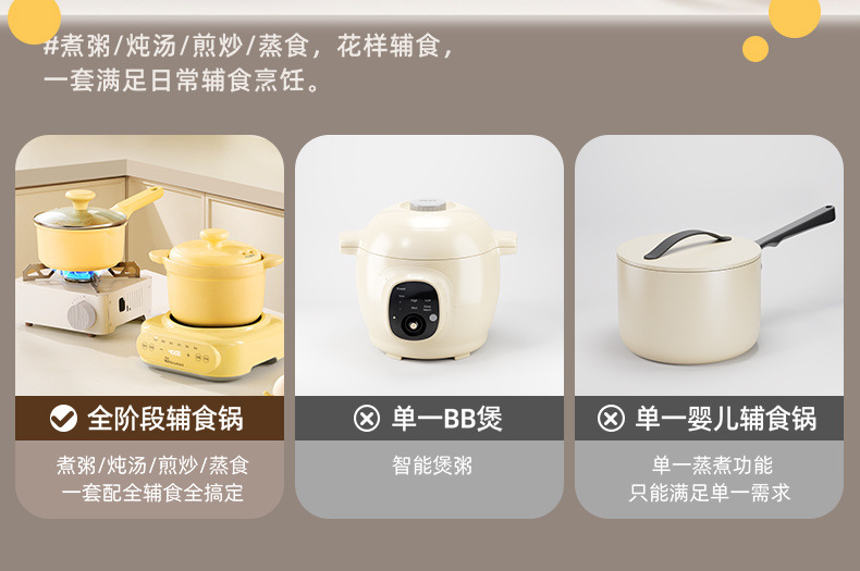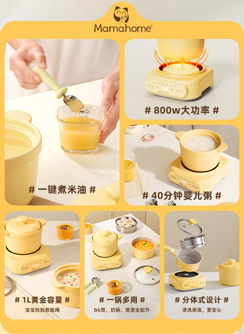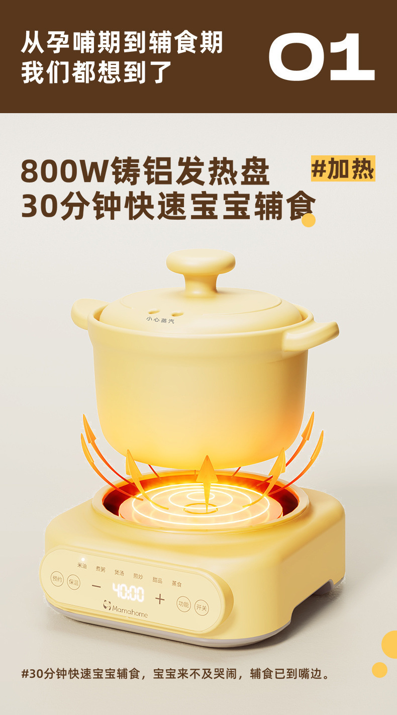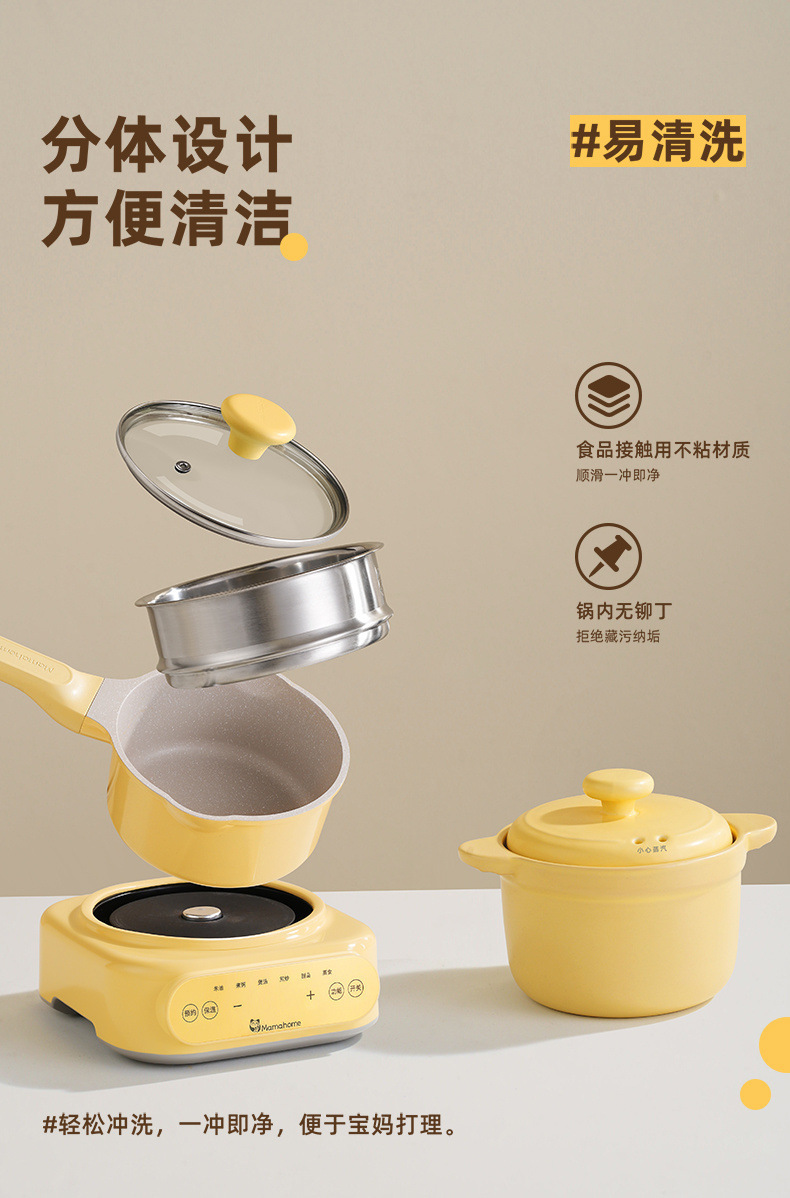 Mamahome補助食ベビー電気シチュー鍋ミニ小煮粥全自動赤ちゃん煎り蒸煮一体
