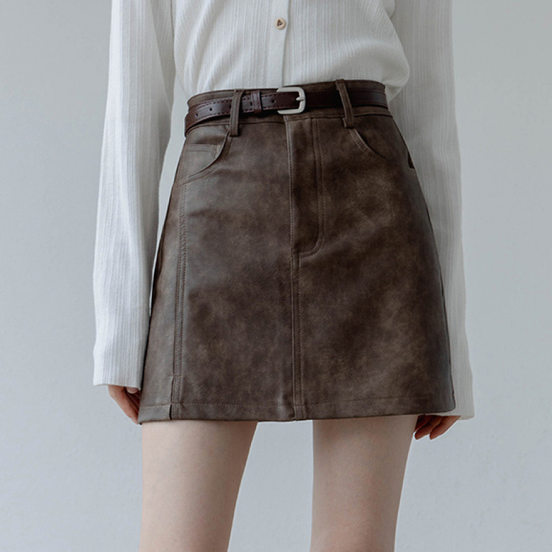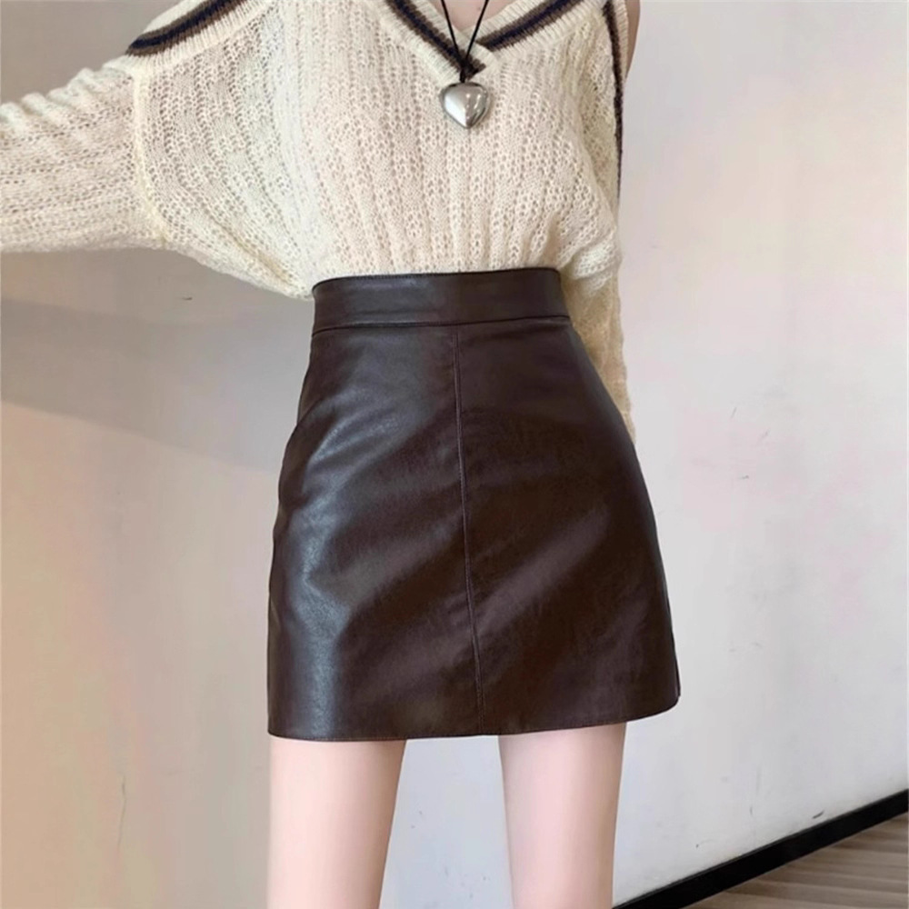 超火工装の小さい皮のスカートの女性の春秋2025新型の茶色のハイウエストは明らかにやせています。