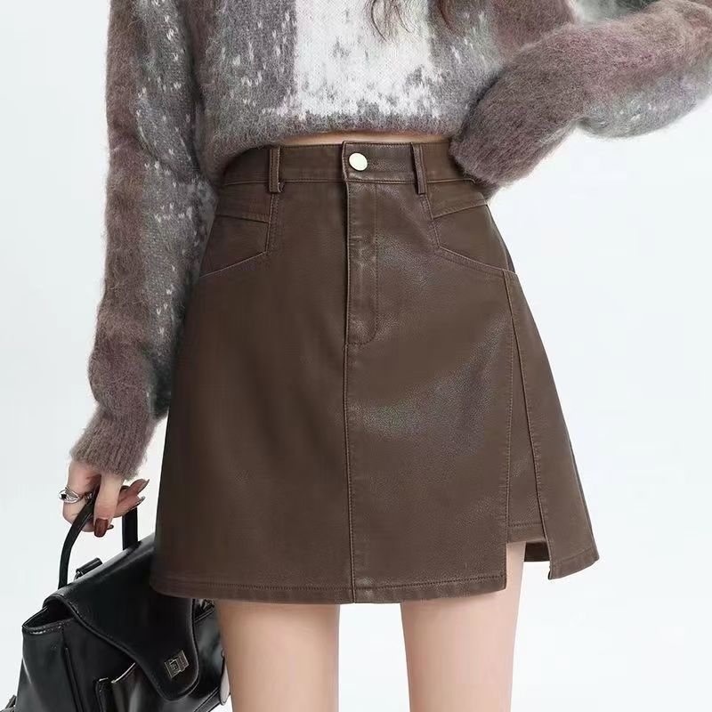 2025秋季新款美拉德咖色皮裙半身裙女高腰a字辣妹pu皮短裙包臀裙