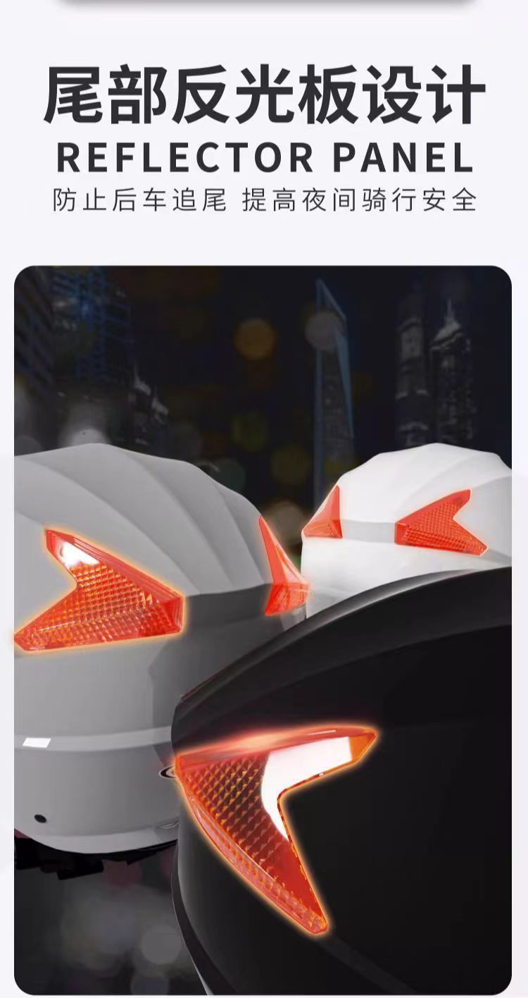 電気自動車の反射を使ってバイクの車に反射を貼って、夜の反射を防ぐことを警告します。ヘルメットを貼ってください。