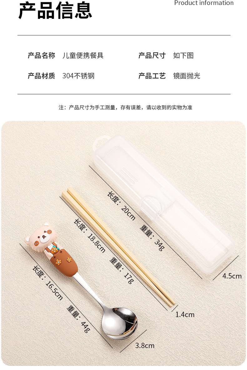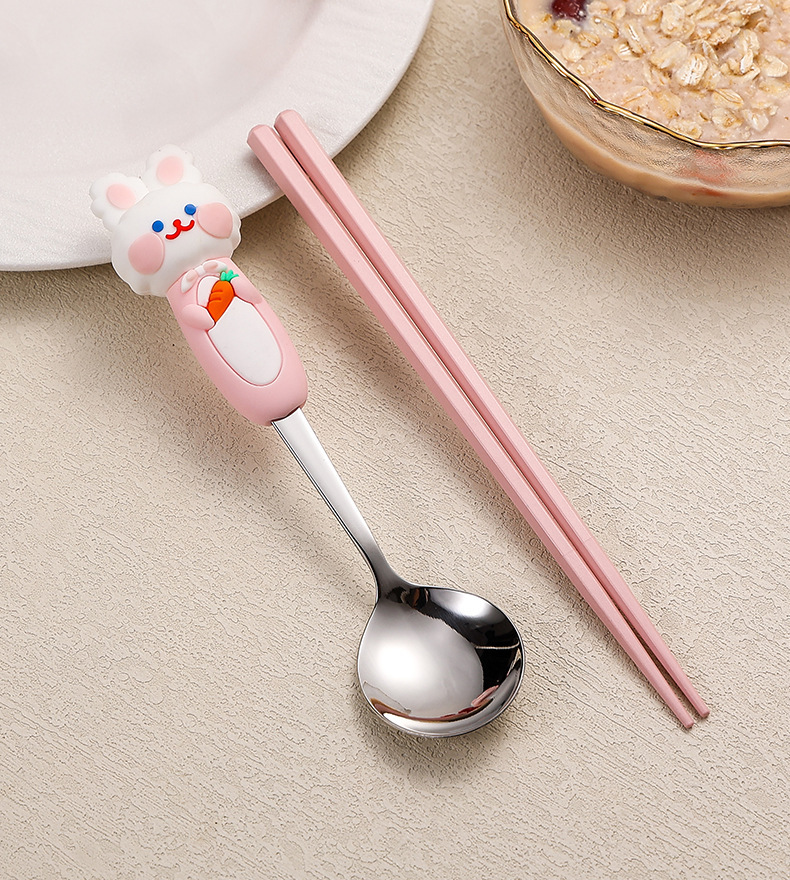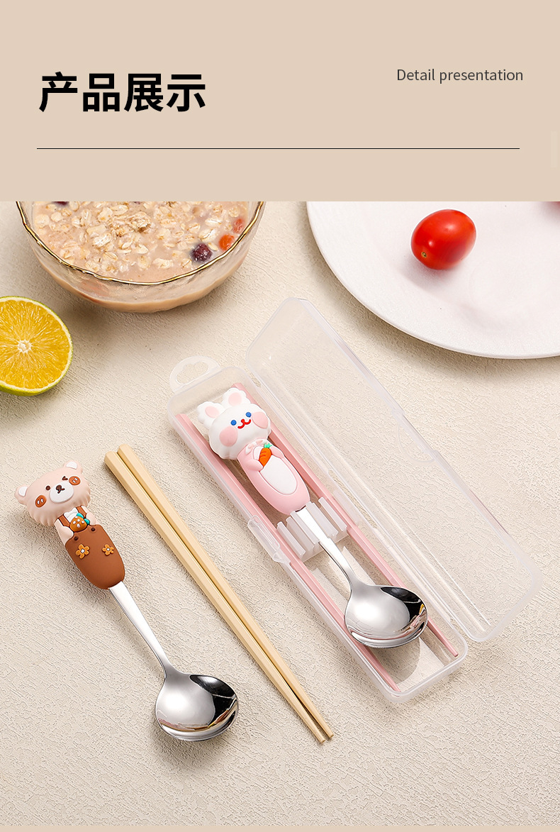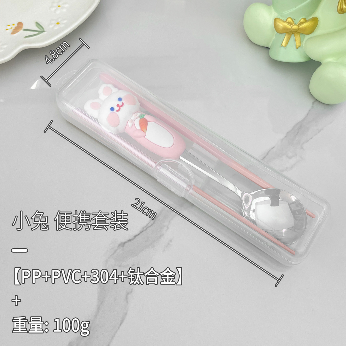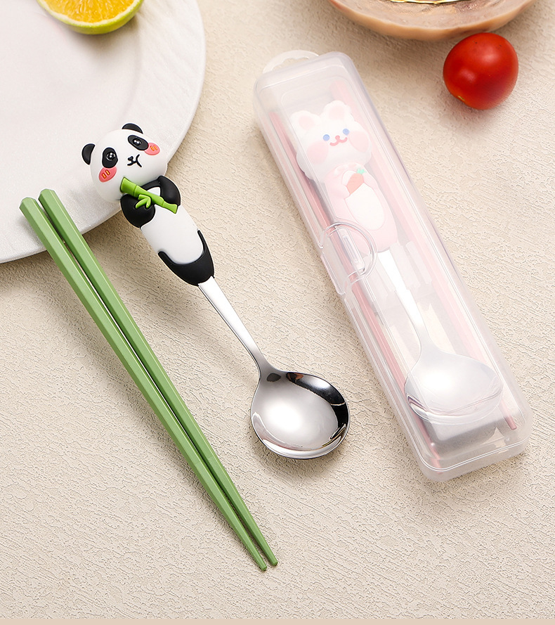 304ステンレス携帯食器子供漫画家庭用パンダ2点セットウサギ熊箸スプーン