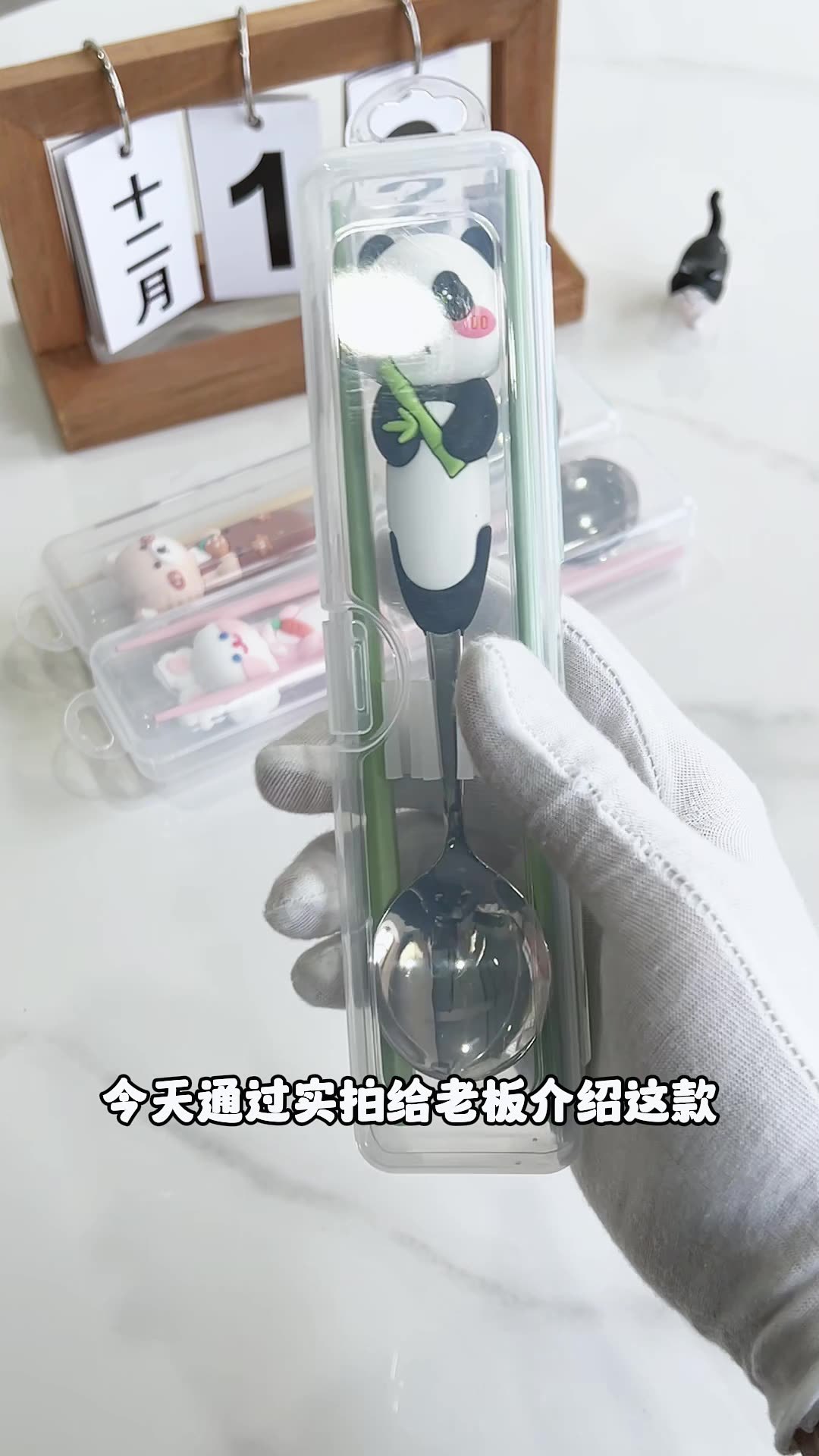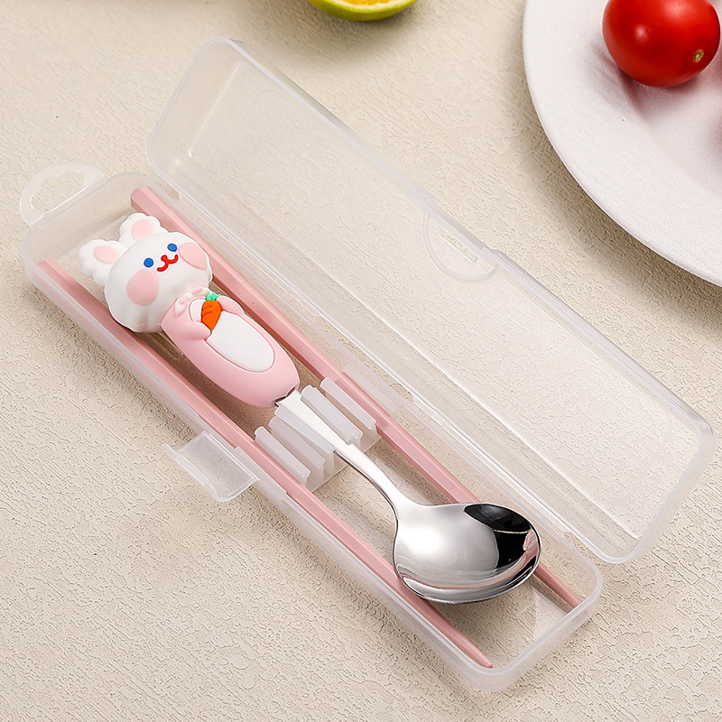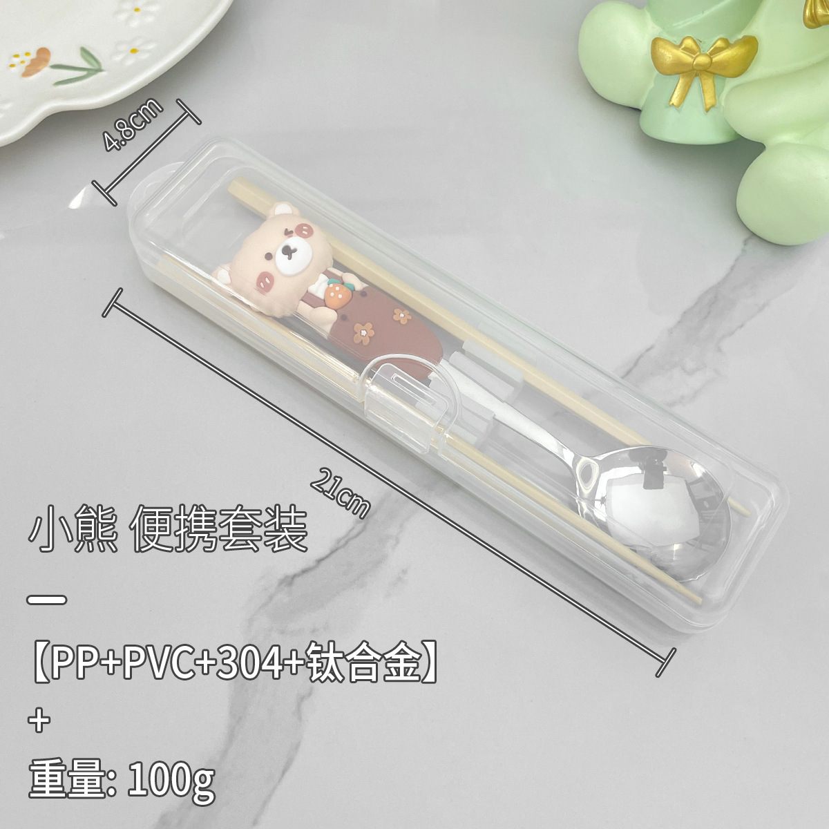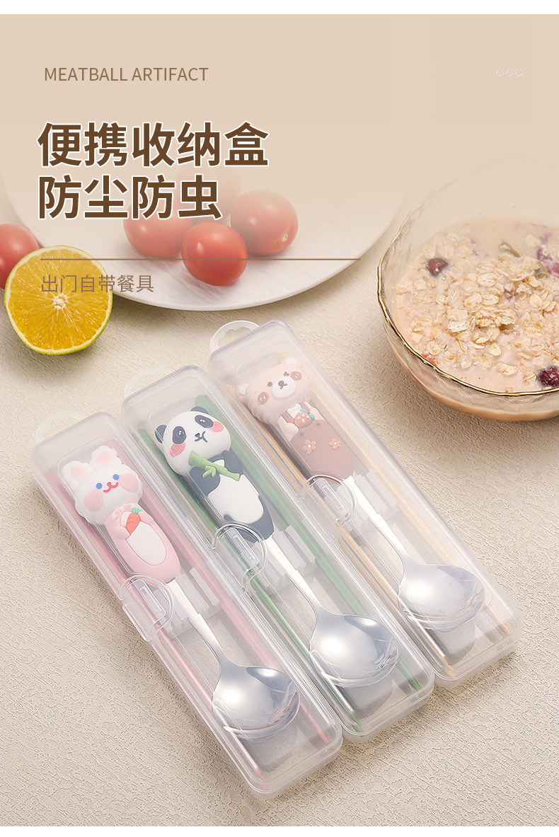304ステンレス携帯食器子供漫画家庭用パンダ2点セットウサギ熊箸スプーン