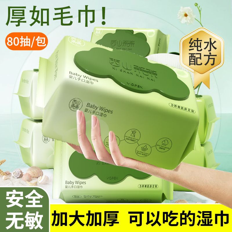 80は赤ちゃんの手の口のウェットティッシュを引き出して、濡れたティッシュを厚くします。