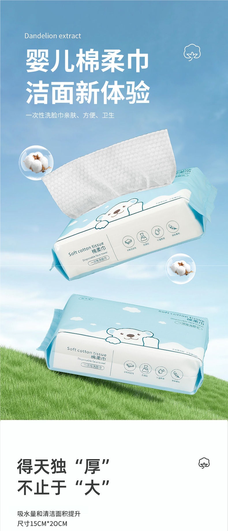 洗顔タオル使い捨てタオル抽出式洗顔タオルを大きくして、綿の柔らかいタオルを厚くして、毛の真珠の紋様を落とさないで、顔のタオルを拭きます。