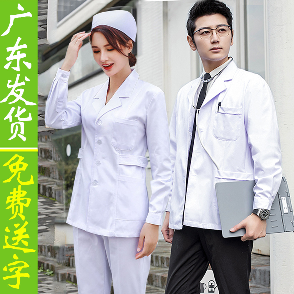 白衣長袖女性ロゴ医師服男性半袖隔離服実験服学生看護師作業服メーカー