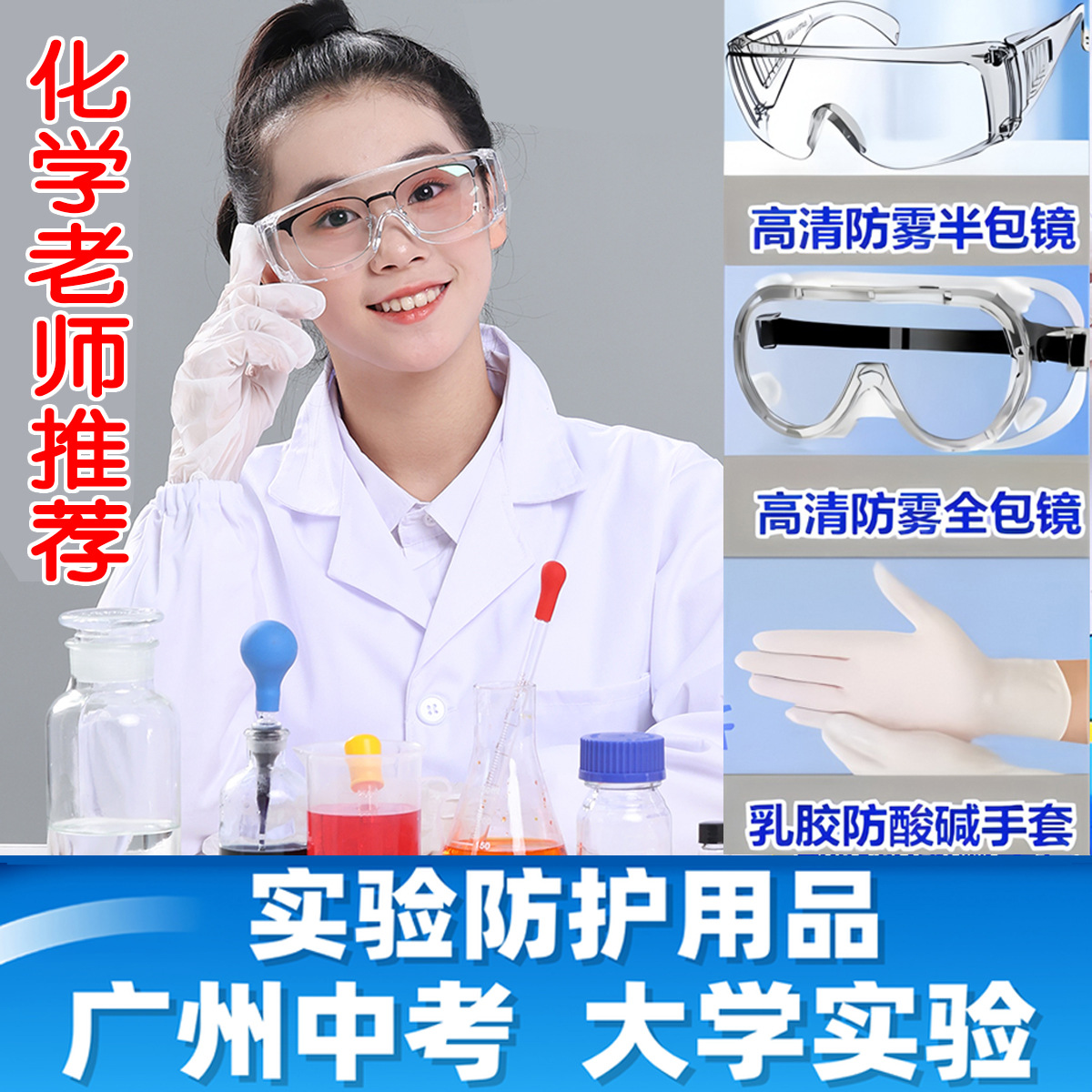 広州中学入学試験化学実験室用防護服、綿製、伸縮性あり、純粋、大学実験室用、全身保護、目保護付き、恵州