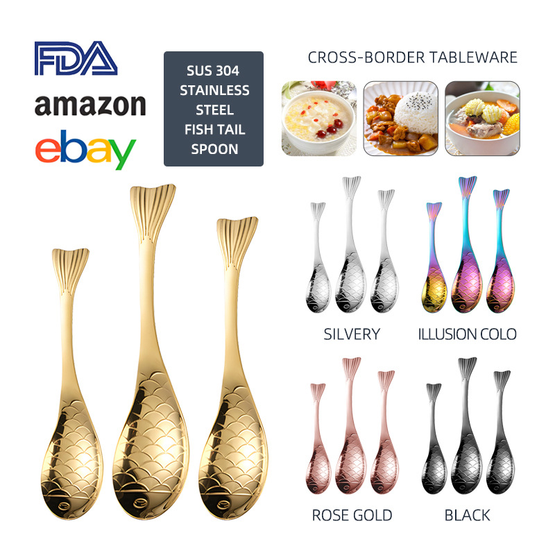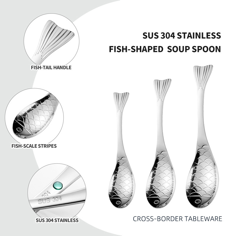 304ステンレス創意鯉スプーンコーヒー攪拌スプーン家庭用スープスプーン高顔値デザートスプーン子供スプーン