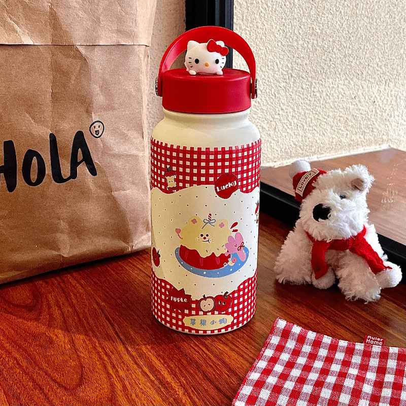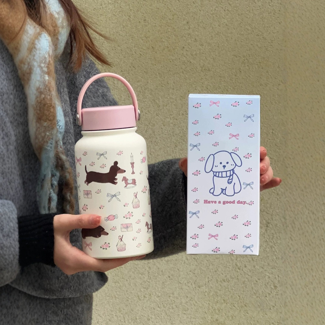 首振り犬男女学生大容量保温カップストローシンプルダブル飲料カップ保冷カップコーヒーカップ保温