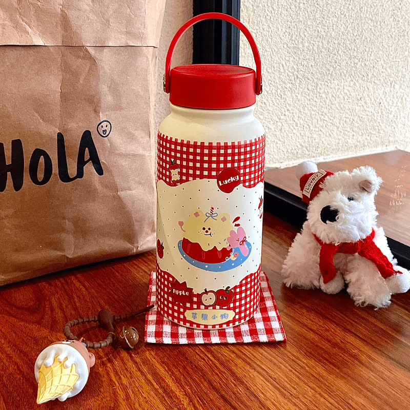 クリーム風イラスト保温カップ新型かわいいステンレスコップ女子高颜値大容量携帯水筒