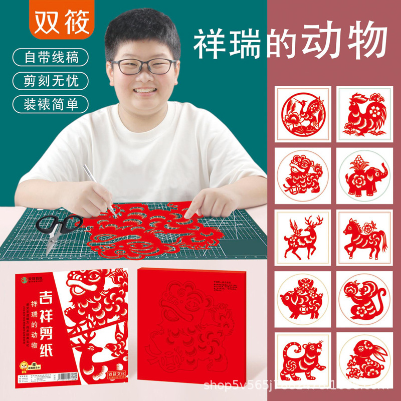 動物吉祥切り紙中国風非遺品DIY新年窓花伝統親子幼稚園手作り材料