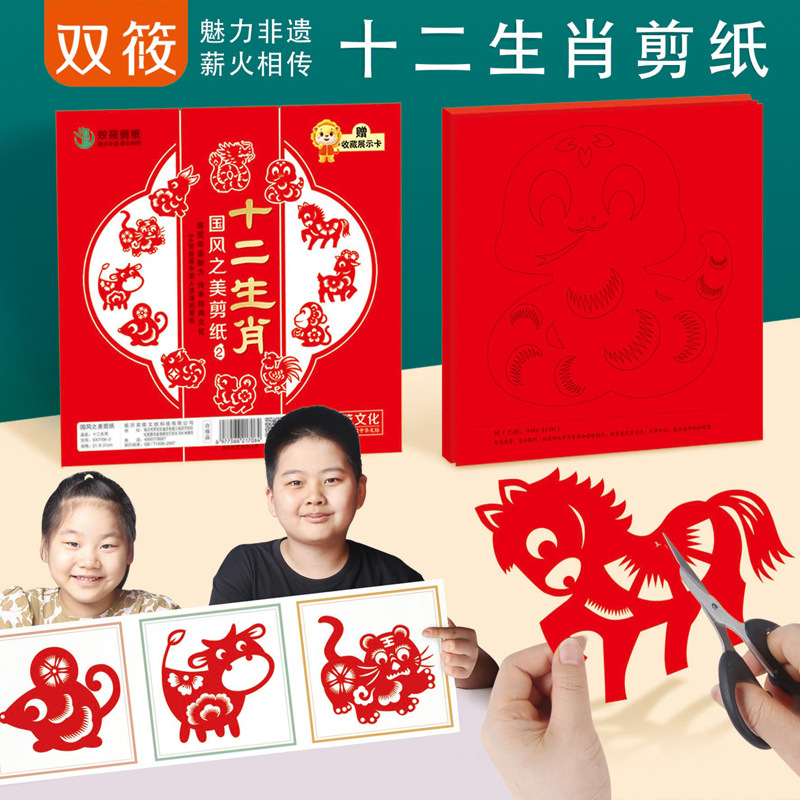十二生肖切り紙DIY老年児童伝統親子幼稚園中国風非遺品手芸材料研究学