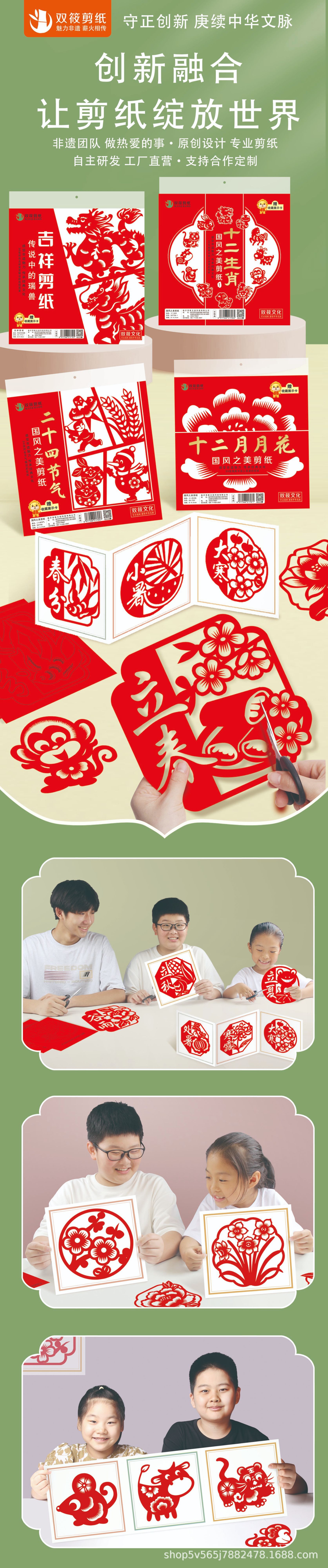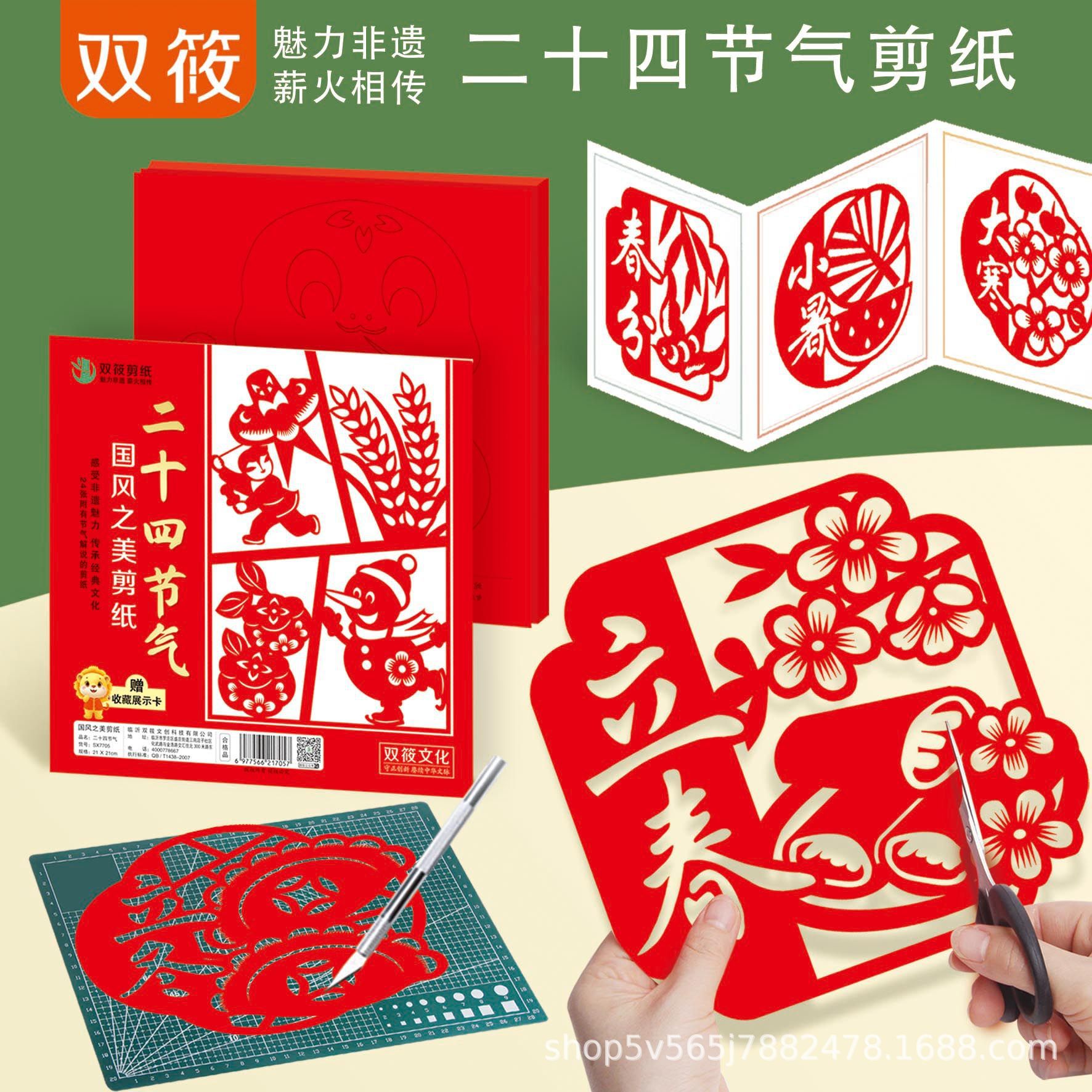 二十四節気切り紙中国風非遺稿DIY新年窓花伝統親子幼稚園手作り材料