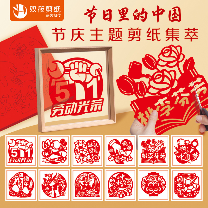 祝日の切り抜き紙メーデー労働六一祝日の母の父七夕教師の窓花国慶節中秋節重陽新年