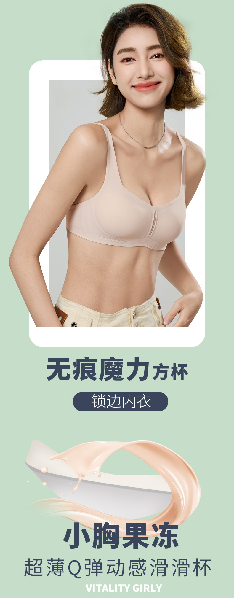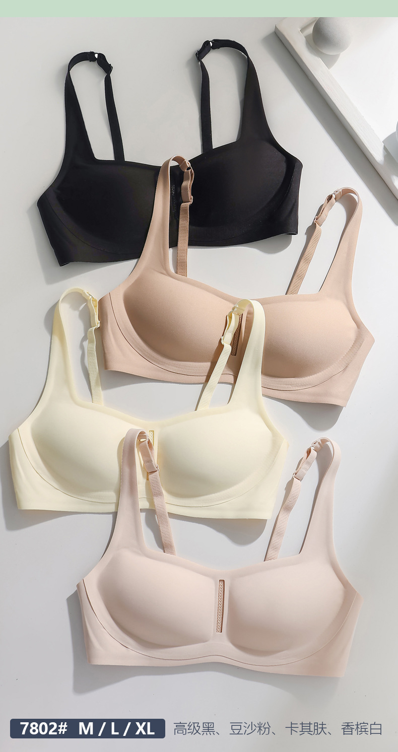 カスタムメイドのスクエアネックシームレスブラ、小胸女性向け、バストアップ、空きカップなし、固定型、夏用薄型、インビジブルブラ、越境EC販売