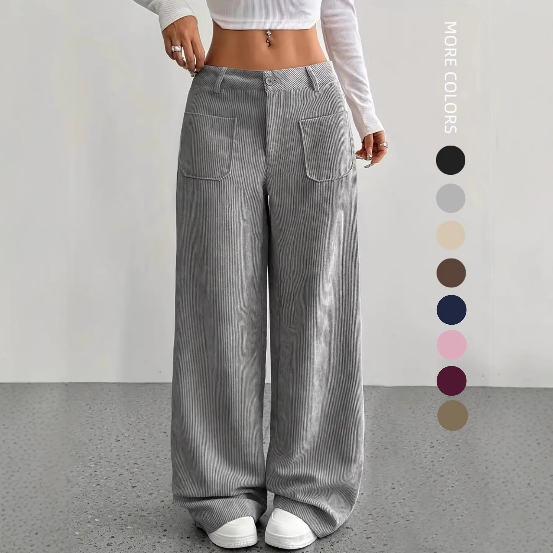 欧米の対外貿易のアマゾンの越境のレジャーの婦人服の前後のポケットのゆったりした純色のポケットは地面の広い足のズボンを引きずってカジュアルです。