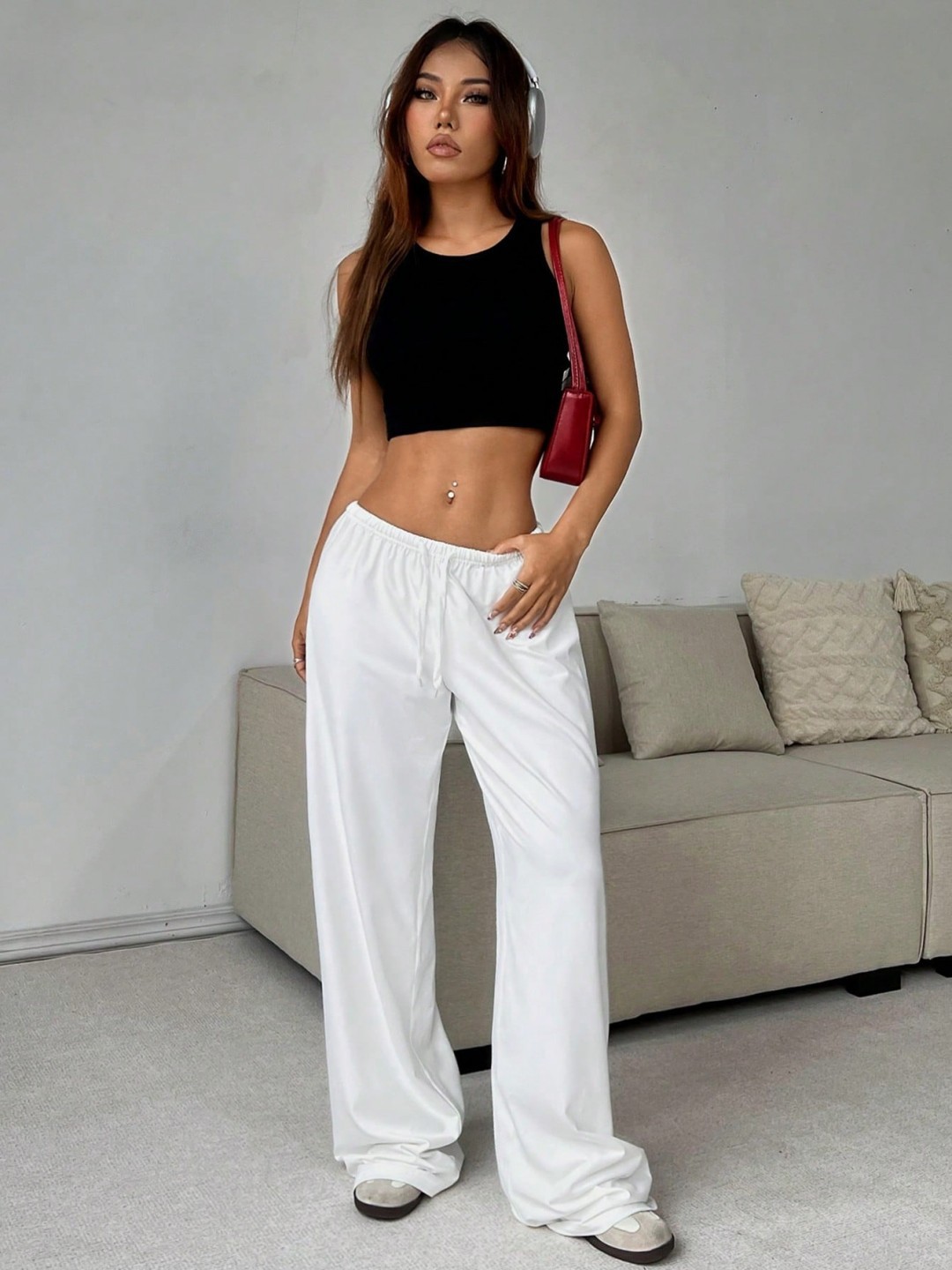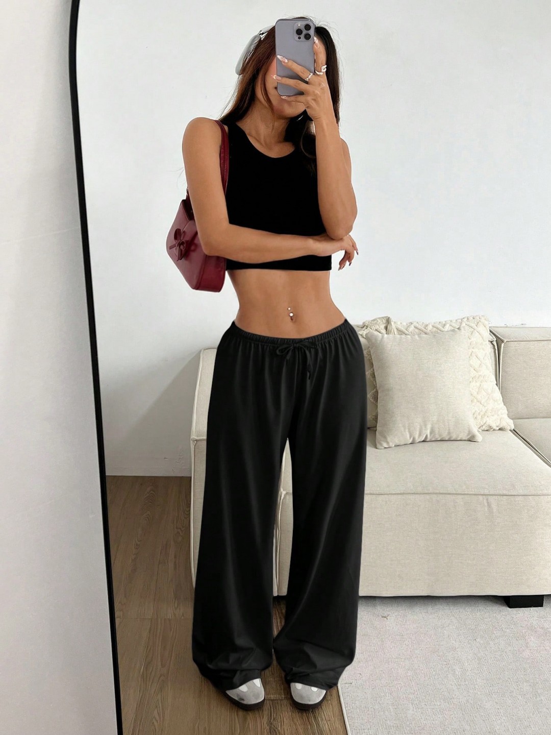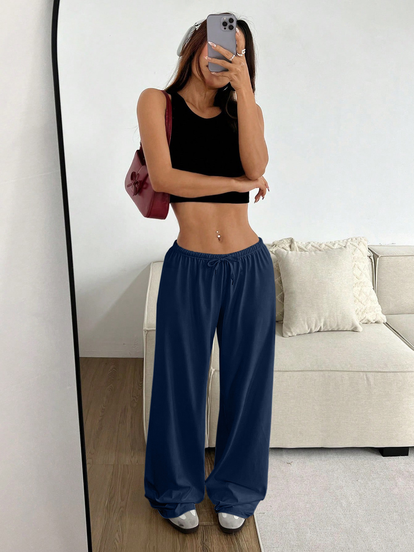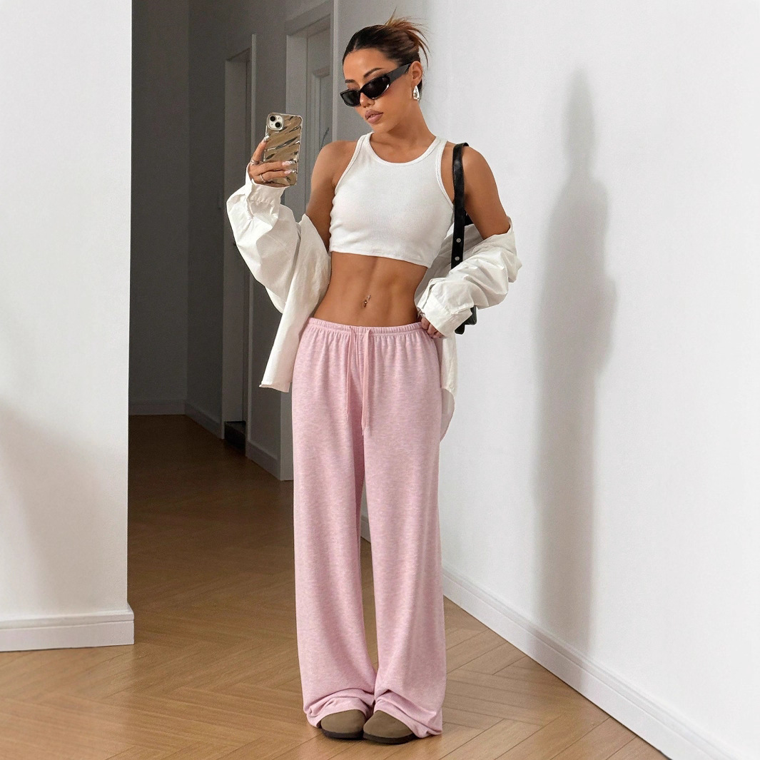 スポットヨーロッパとアメリカのクロスボーダーアマゾン独立ステーションレディースソリッドカラー巾着ウエストソフトニットルーズカジュアルパンツ