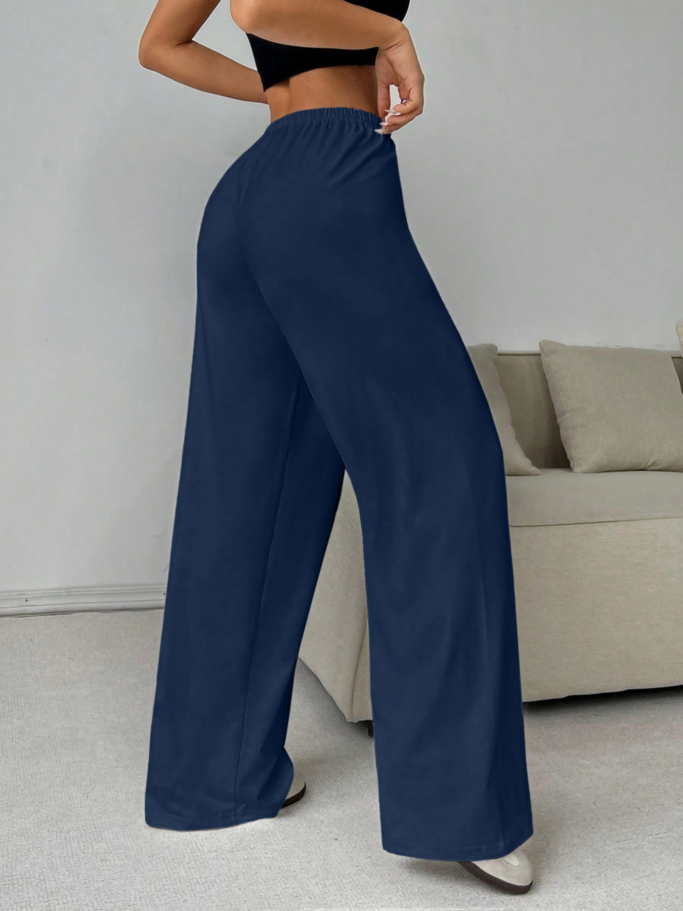 国境を越えた欧米の婦人服アマゾン速売通独立駅の純色のズボンは腰のひもの広い足のカジュアルなズボンを締めます。