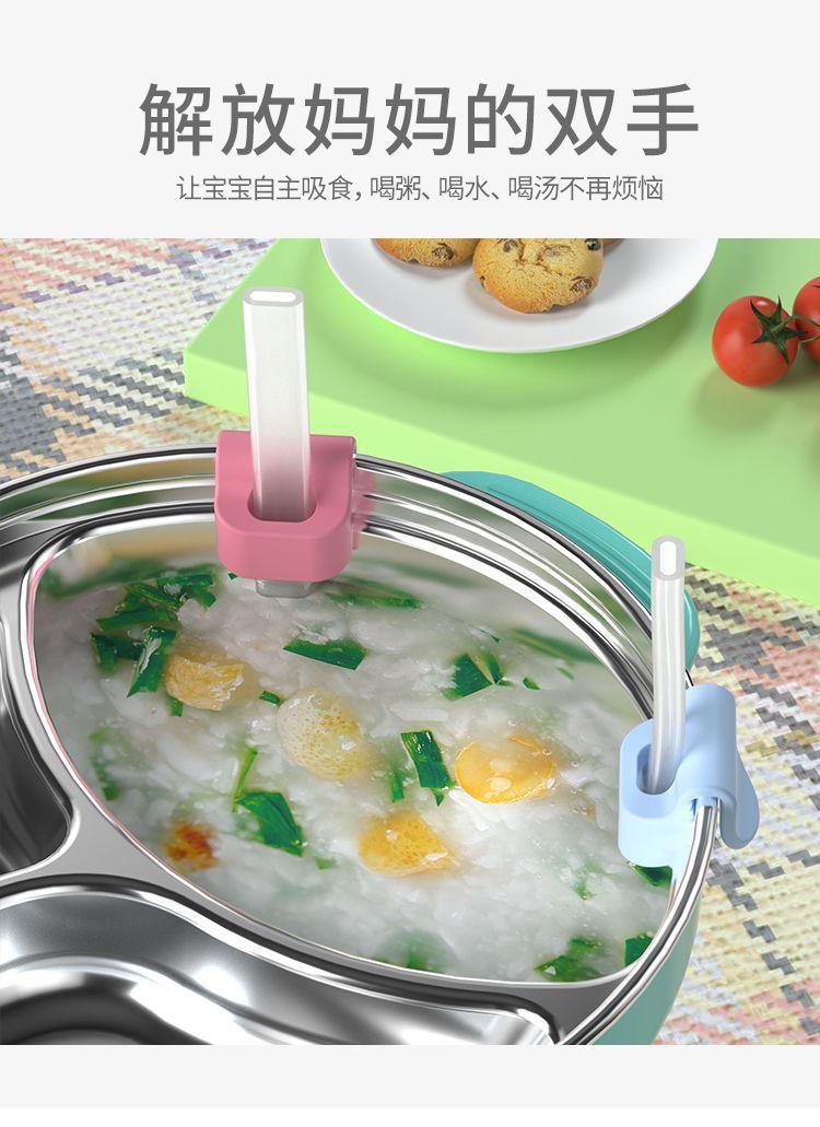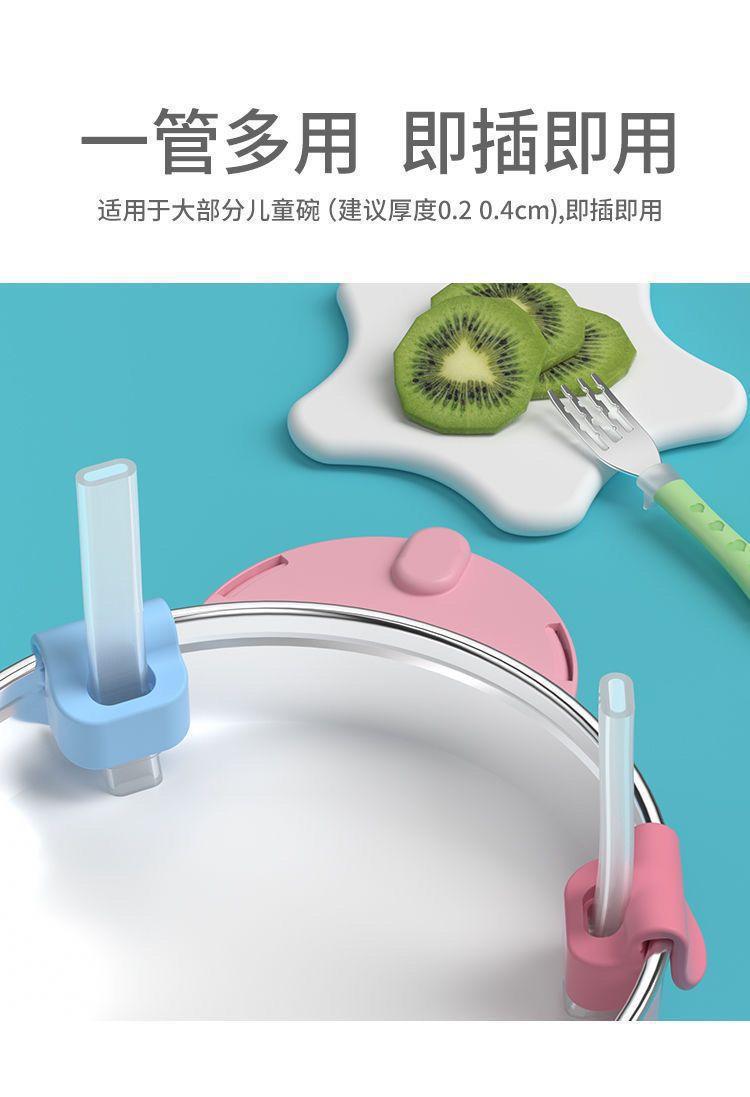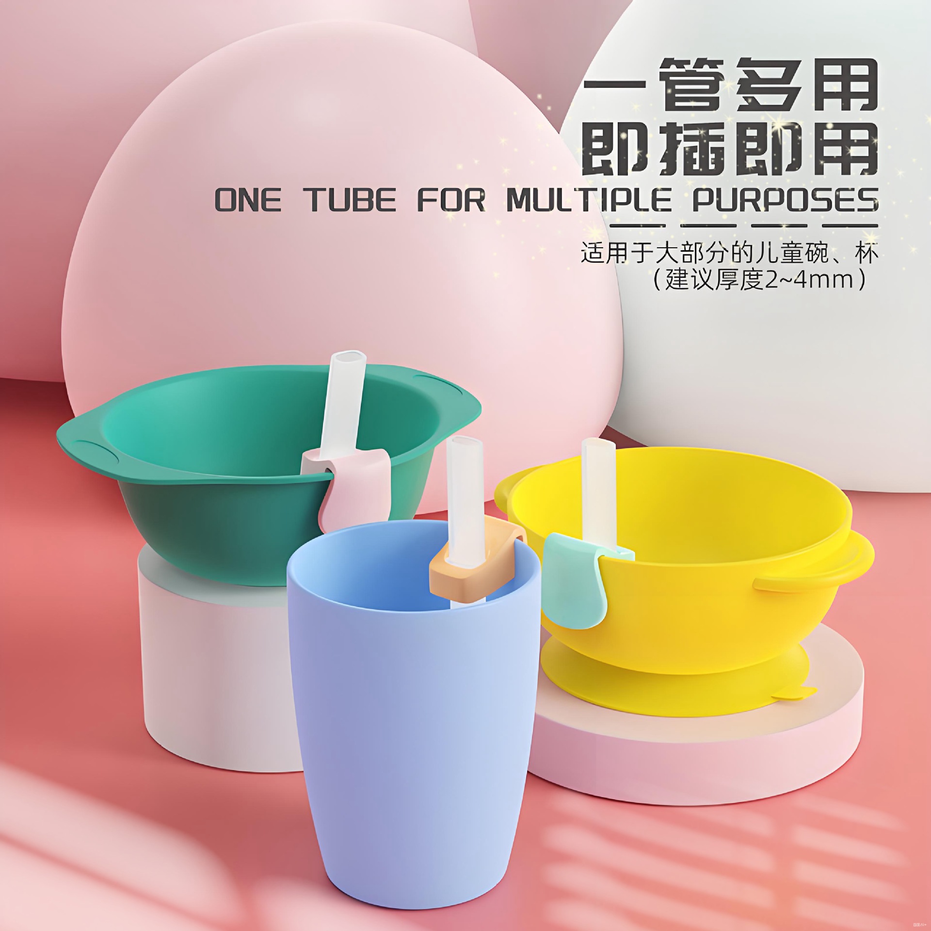 跨境硅胶宝宝喝汤喝粥可拆卸婴幼儿辅食吸管卡扣儿童喝汤神器吸管