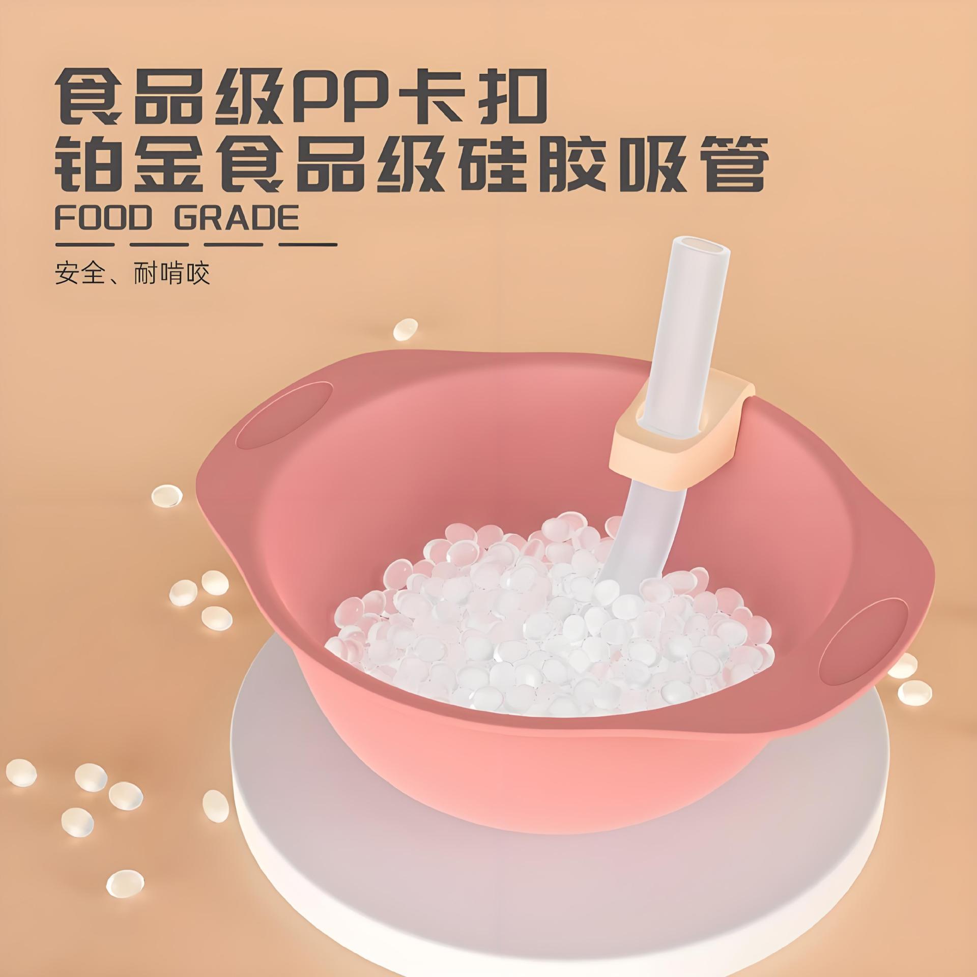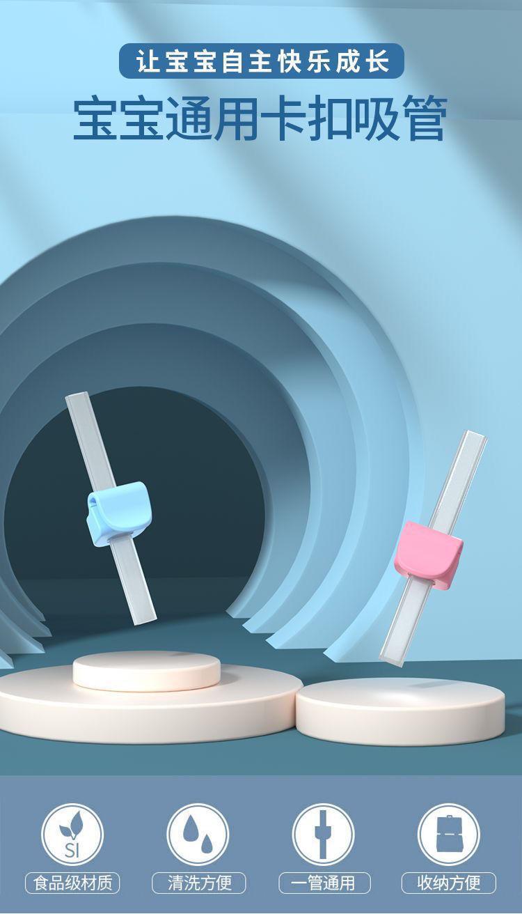 外贸硅胶宝宝喝汤喝粥洗可拆卸婴幼儿辅食吸管卡扣儿童带吸管吸管