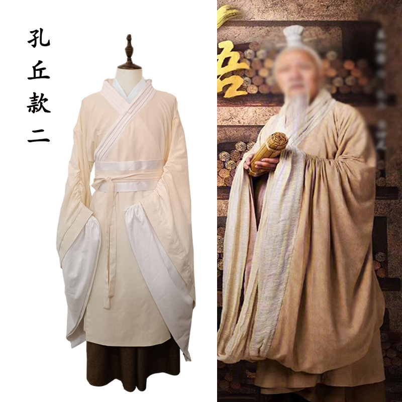 典籍の中の中国春秋戦国秦朝孔子老子書生綿麻男士漢服大臣員外古着
