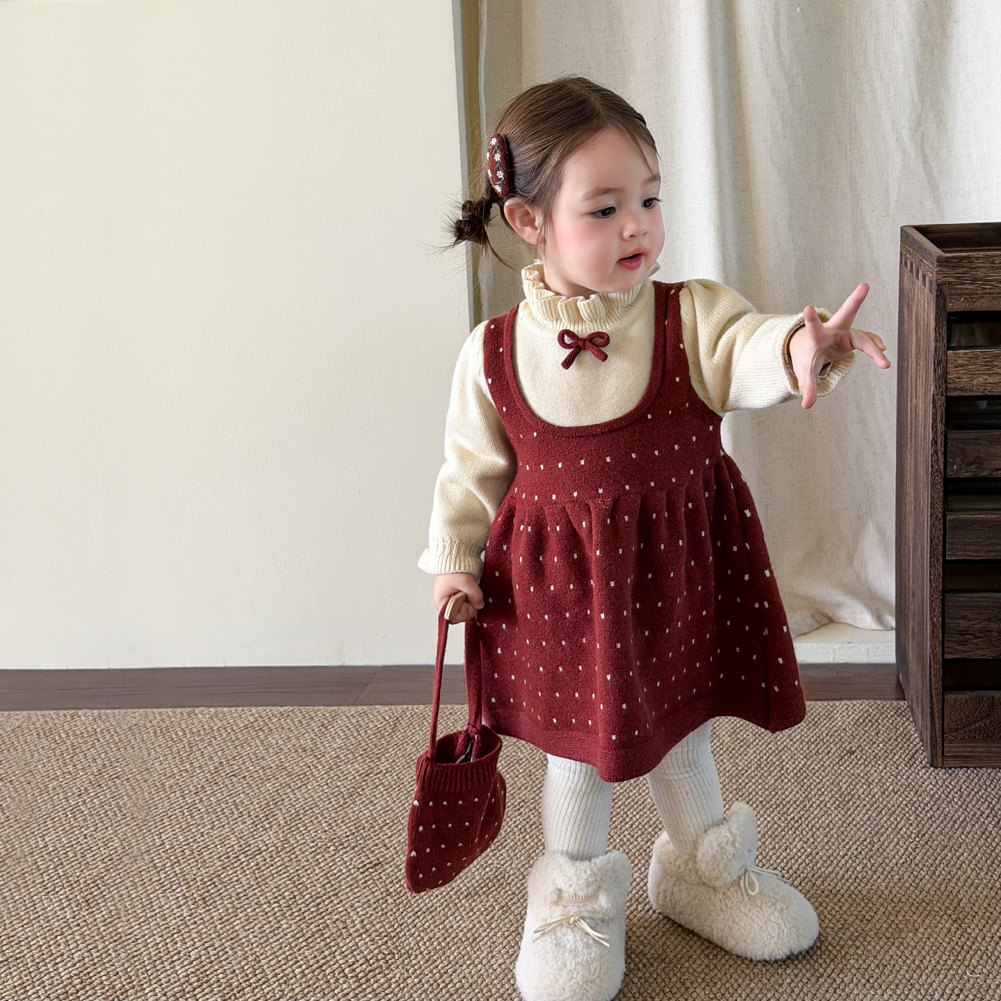 蔗梨童装女童连衣裙冬装加厚假两件儿童公主裙毛衣裙婴儿女宝裙子