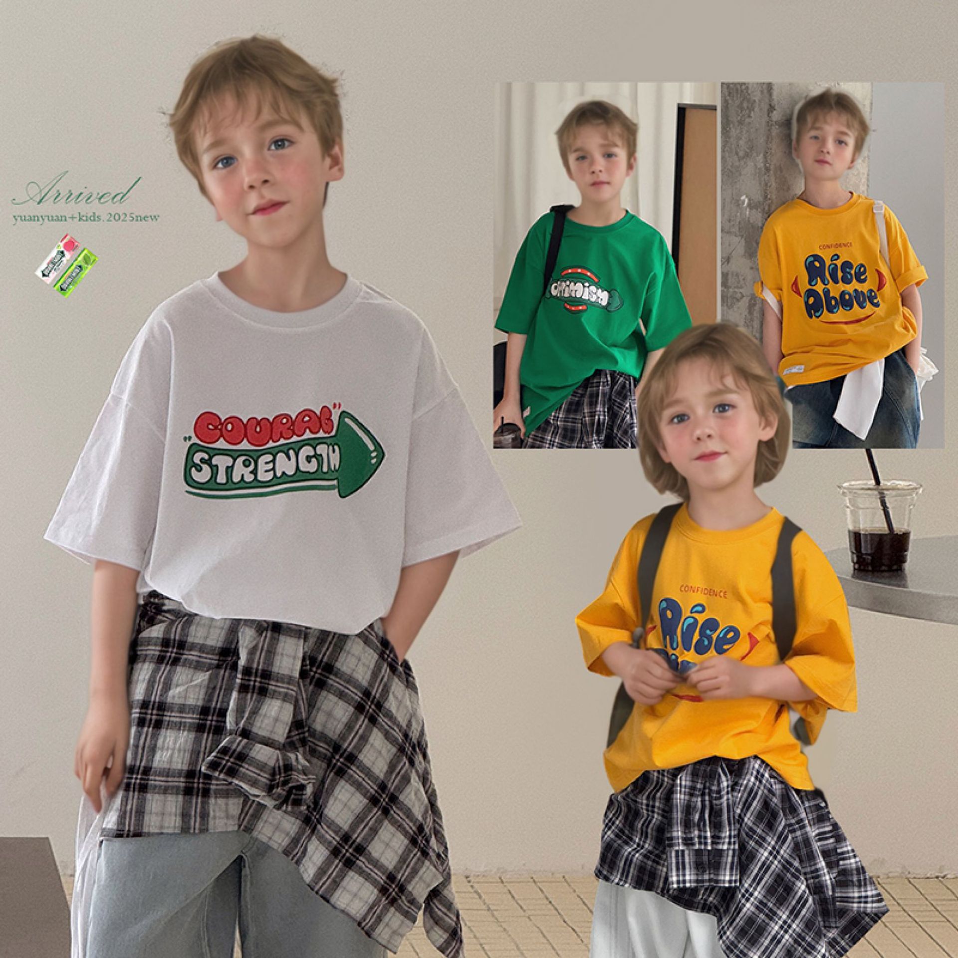 男の子用サマーウェア、ラウンドネックTシャツ、2025年新作、子供用春夏トップス、男の子用純綿インナー、ハンサム