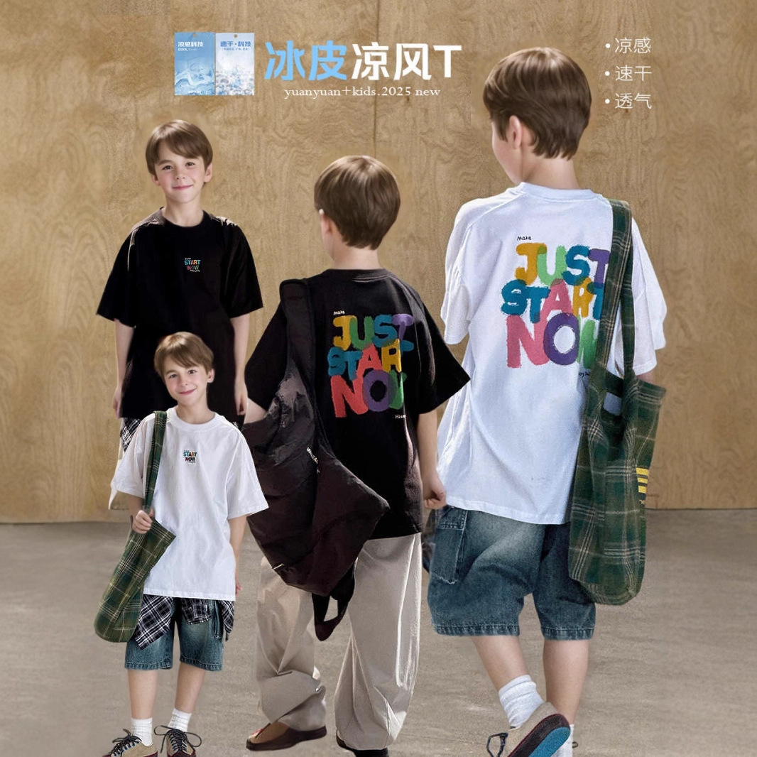クールコットン子供服 2025 新しい子供用 Tシャツ夏スタイル男の子半袖中大男の子ハンサムで快適な半袖
