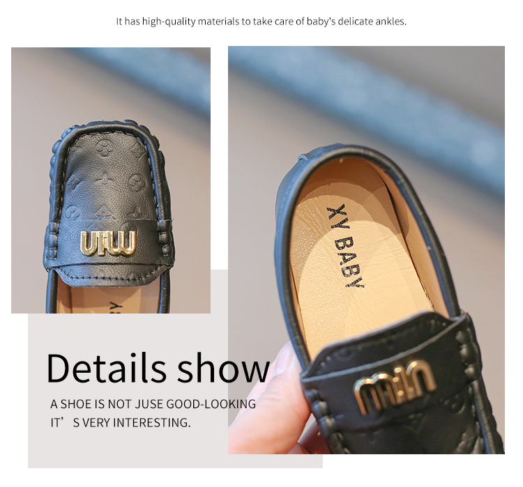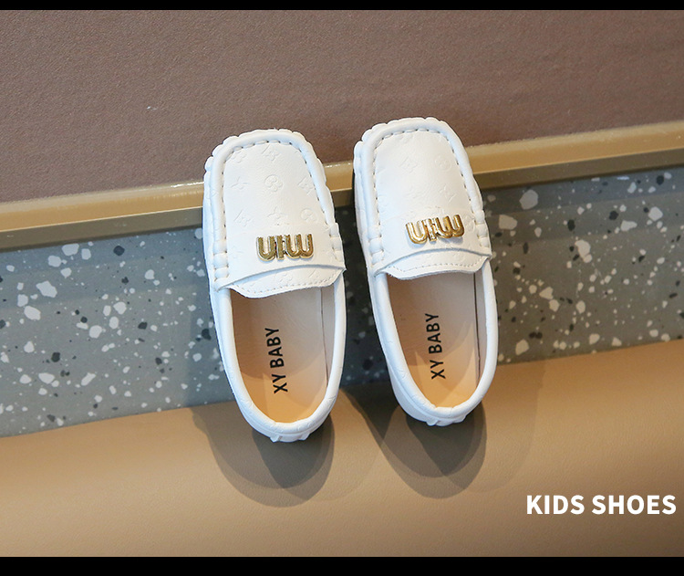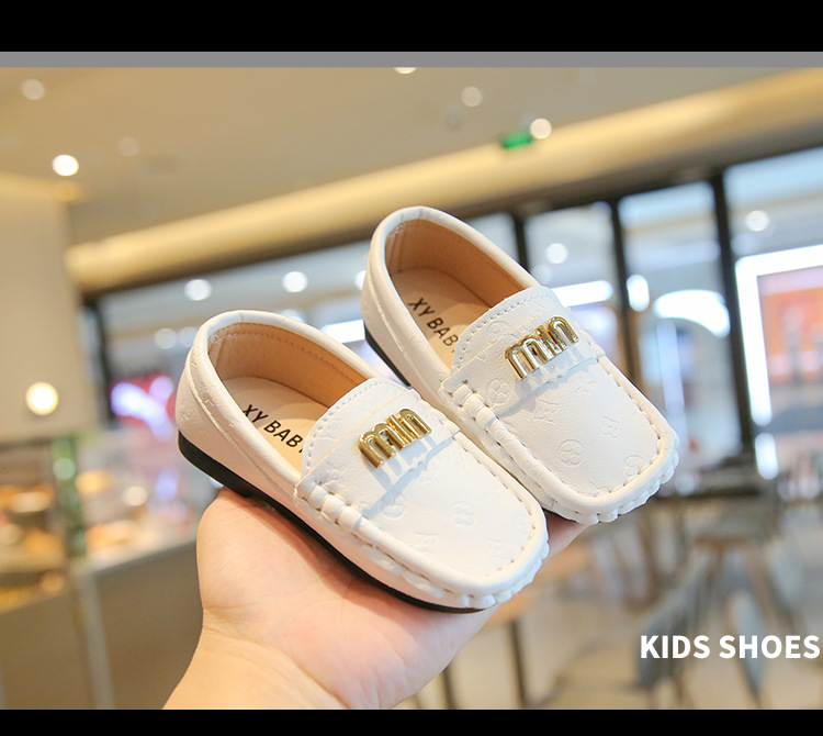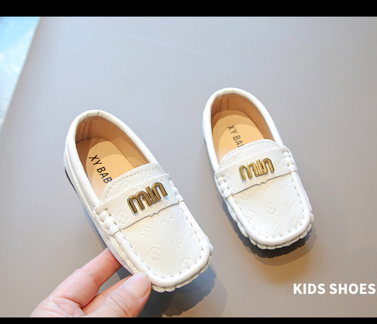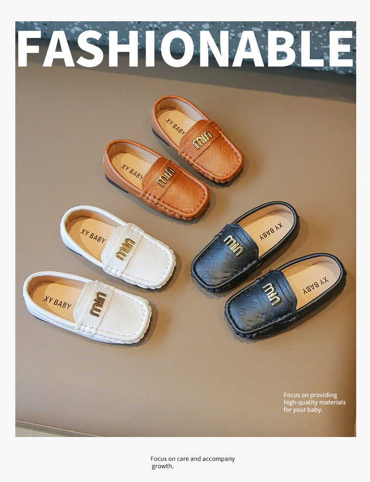 2025春夏の新しい靴の子供の平と金属のボタンの柔らかい底の豆の靴の丸い頭は足をかぶせてカジュアルな靴を漕ぎます。